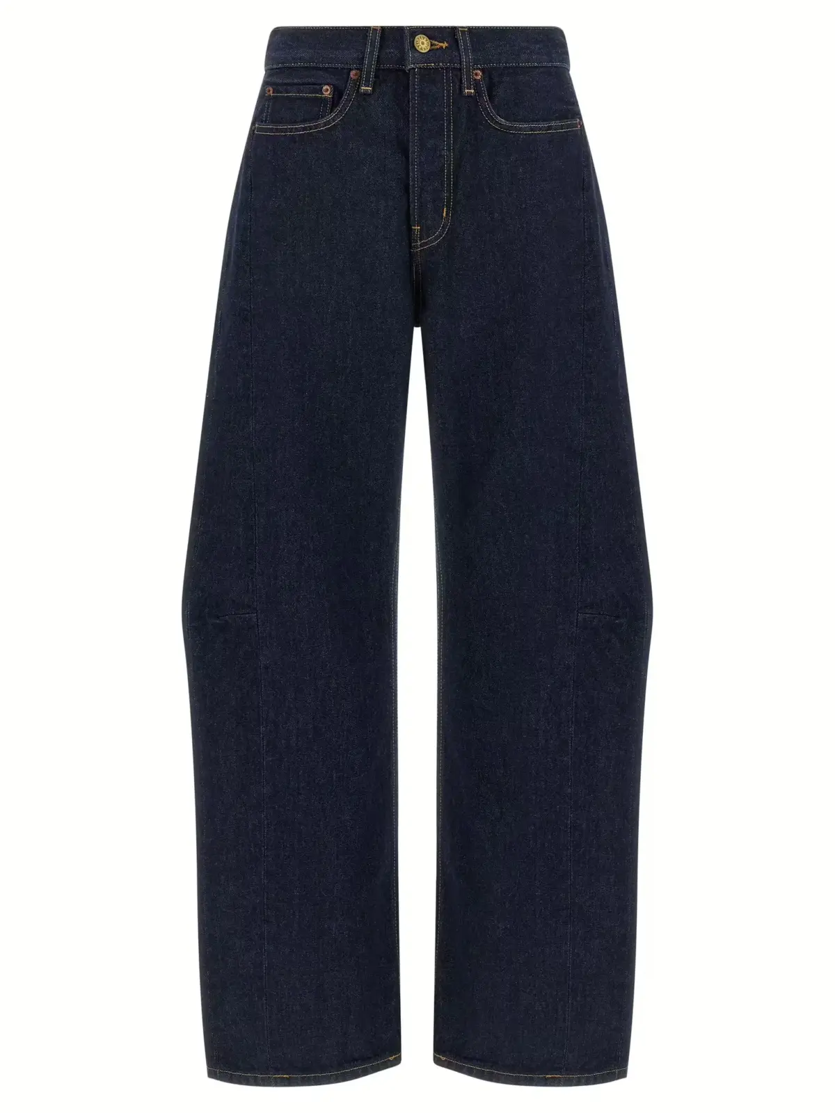 Елегантні жіночі джинси Slim Lasso виконані з 100% японського двостороннього деніму високої якості з контрастною строчкою, мають злегка вигнуті широкі штанини та стильні бокові складки, забезпечуючи неперевершений комфорт і універсальність, підкреслюючи статус і вишуканий стиль.