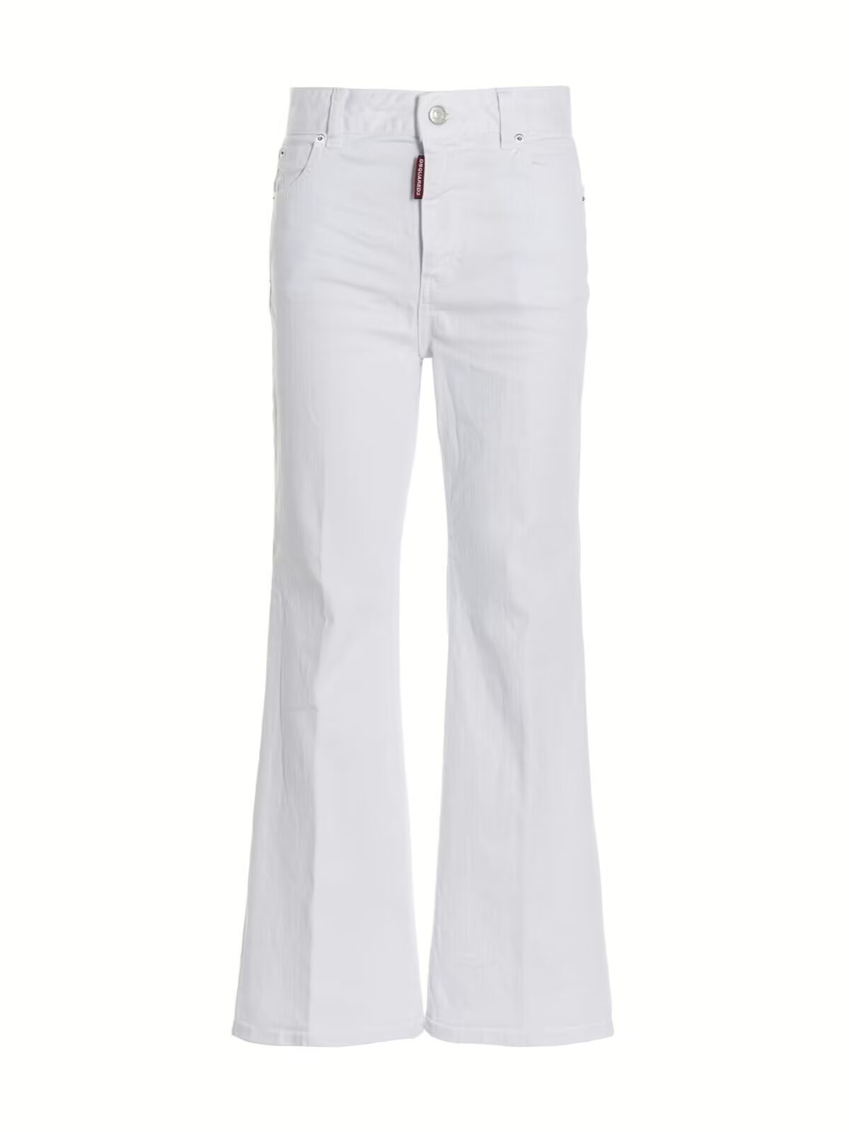 Джинси Super Flared Cropped від Dsquared2 – це втілення стилю та комфорту. Виконані з якісного бавовняного деніму, що містить 98% бавовни та 2% еластану, вони забезпечують ідеальне поєднання міцності та еластичності. Білого кольору, ці джинси оснащені зручною застібкою на блискавку та кнопку, мають п’ять кишень та шкіряний бирок з логотипом. Завужений крій додає сучасності, а розкльошений низ – виразності образу.