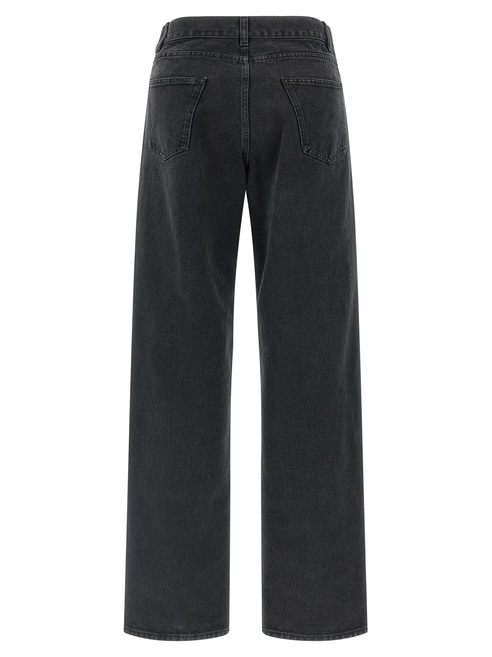 Чорні джинси Clair із високою талією виконані з натуральної бавовни преміум якості з легкою ефектом вигоряння, що надає виробу вишуканої текстури. Вільний прямий крій і класичні деталі підкреслюють сучасний стиль, забезпечуючи комфорт і універсальність для статусного образу.