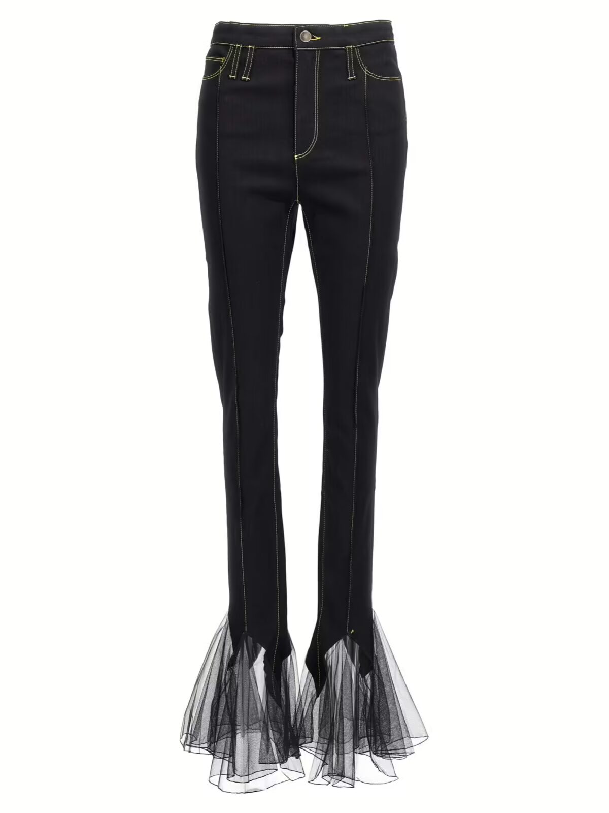 Джинси Tulle Nensi Dojaka – це втілення розкоші та сучасного стилю, які підкреслять вашу індивідуальність та елегантність. Виготовлені з високоякісних матеріалів, що поєднують 66% бавовни, 21% поліестеру, 10% віскози та 3% еластану, ці джинси забезпечують ідеальну посадку та комфорт протягом усього дня. Висока талія створює витончену силуетну лінію, а контрастна прострочка надає виробу оригінального вигляду. Ніжні оборки з тюлю на нижній частині штанин додають жіночності та вишуканості, перетворюючи кожен крок у елегантний жест. Завдяки фронтальному застібанню на блискавці та гудзику, ви отримуєте зручність у носінні, а також універсальність, що дозволяє поєднувати ці джинси як з класичними, так і з більш кежуал образами. Створюючи стильний та інноваційний вигляд, ці джинси стануть незамінним елементом вашого гардеробу, відображаючи статус і витонченість, які ви заслуговуєте.