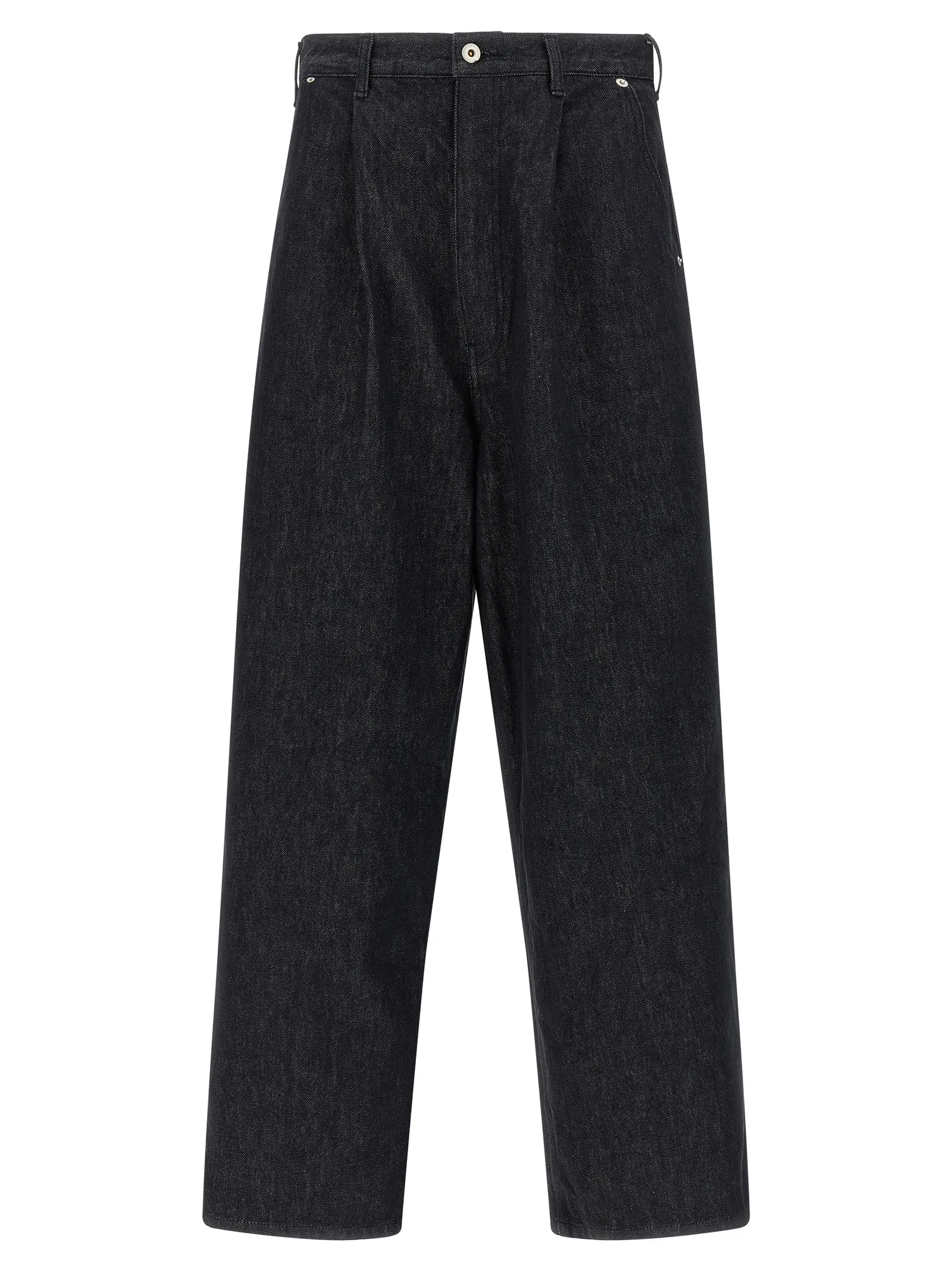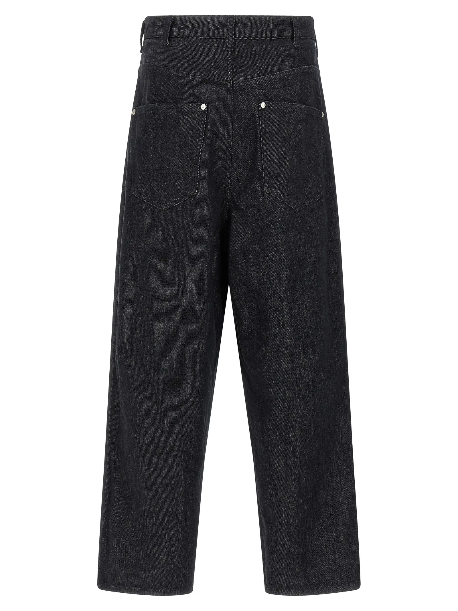 Джинси виготовлені з щільної бавовняної денімової тканини. Низька посадка в кроку. Широкі прямі штанини. Застібка на блискавку і передню кнопку. Присутні кишені. Склад матеріалу 100% бавовна.