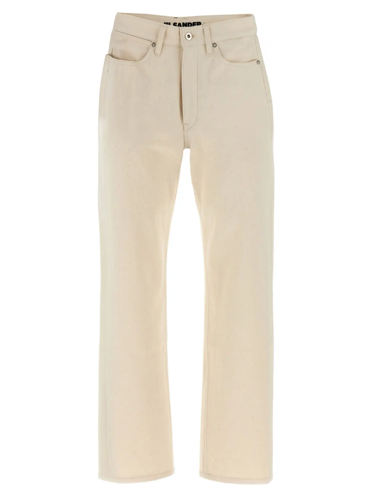Елегантні жіночі джинси з японського необробленого деніму високої посадки відзначаються бездоганною якістю натуральної бавовни, сучасним кроєм із укороченими штанинами, практичними застібками та вишуканою шкіряною емблемою на спині, підкреслюючи статус і вишуканий стиль.