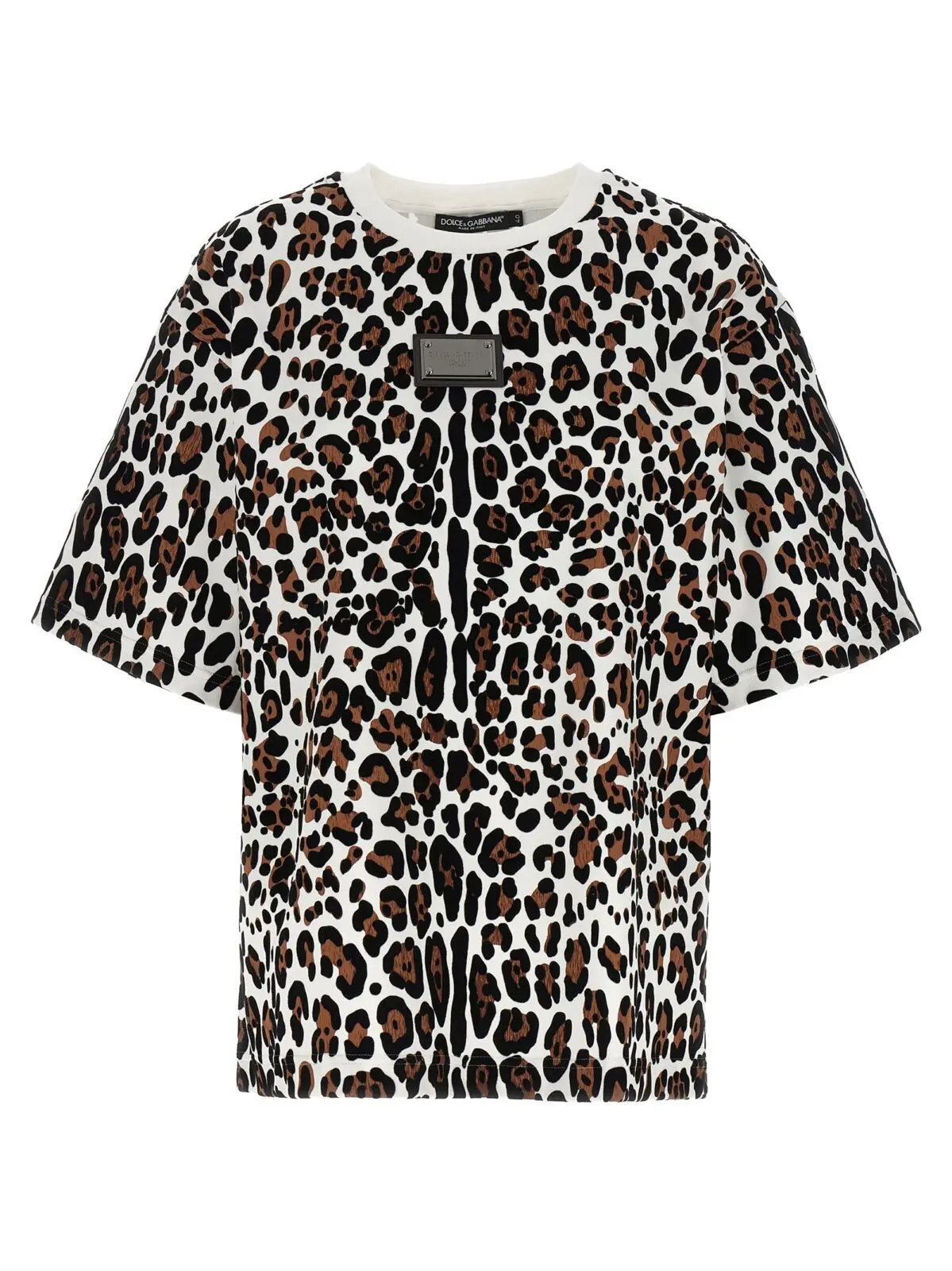 Футбока Animal print logo plaque Dolce & Gabbana Багатокольоровий