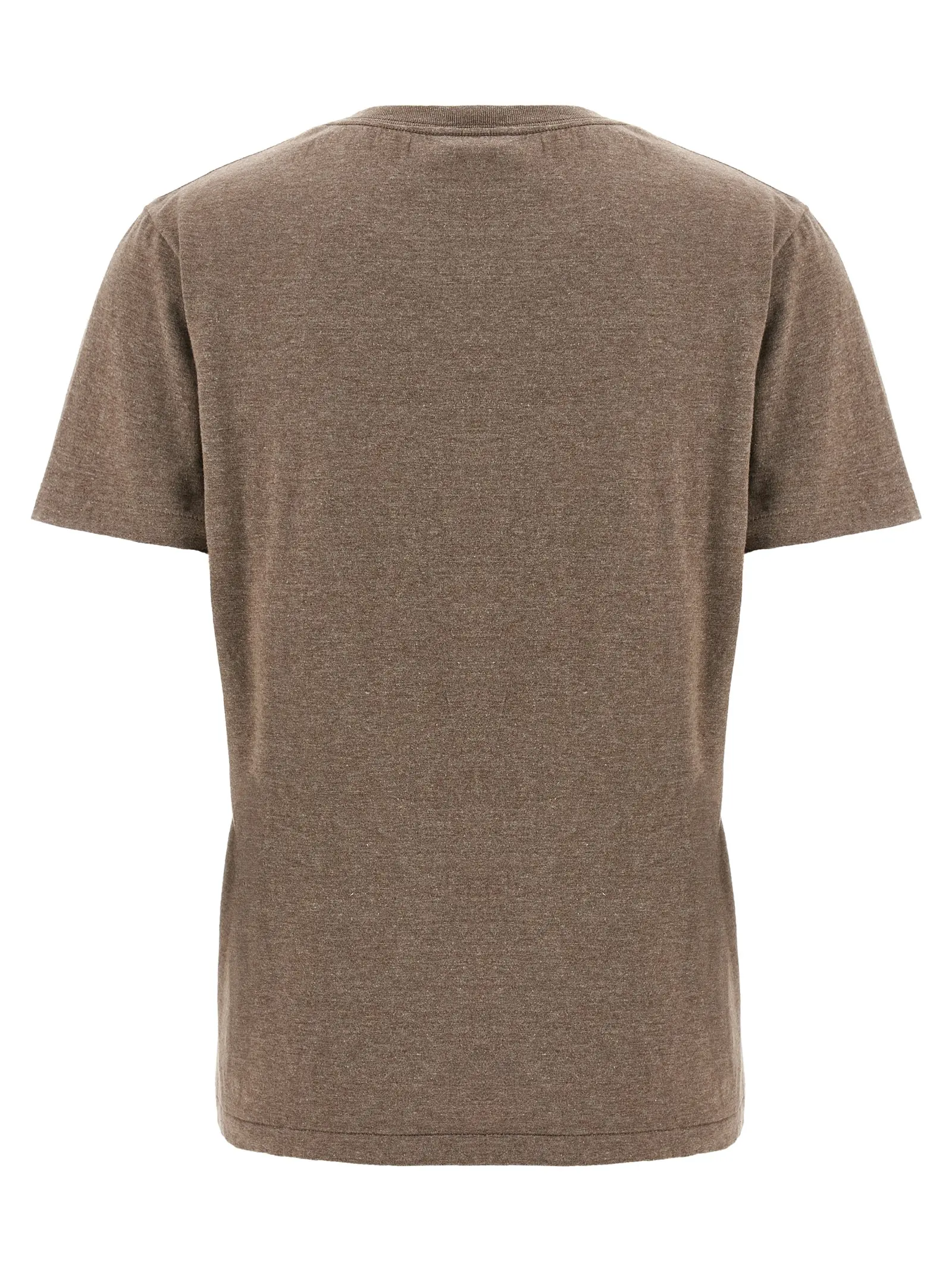 Вишукана жіноча футболка бежевого відтінку з короткими рукавами, виконана з високоякісної бавовняної меланжевої тканини, що забезпечує комфорт і довговічність. Елегантний дизайн з круглим вирізом поєднує стиль і універсальність, підкреслюючи статус і бездоганний смак.