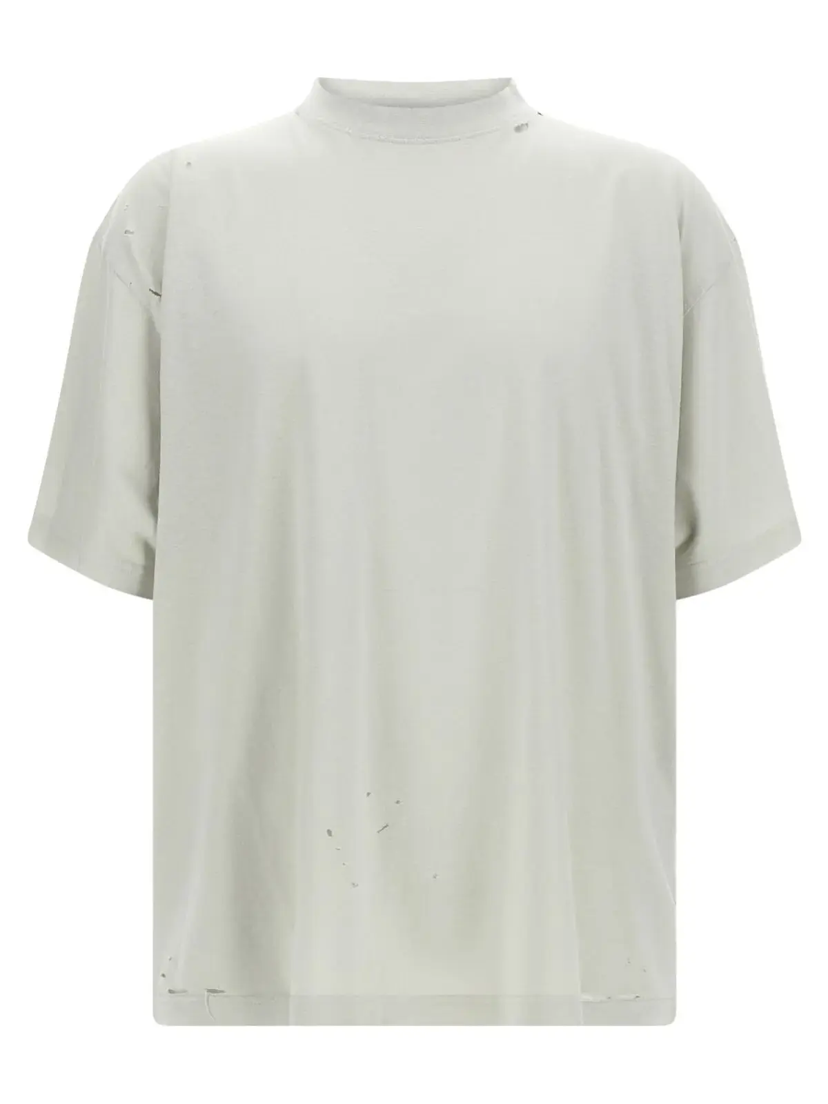 Ця бежева футболка з колекції Balenciaga виконана з високоякісного 100% бавовняного джерсі з ефектом зношеності, що надає виробу унікальний шарм. Витончений принт у стилі чорної літери на спині підкреслює сучасний дизайн, а вільний крій із заниженими плечима забезпечує комфорт і універсальність, створюючи неперевершений образ статусу і стилю.