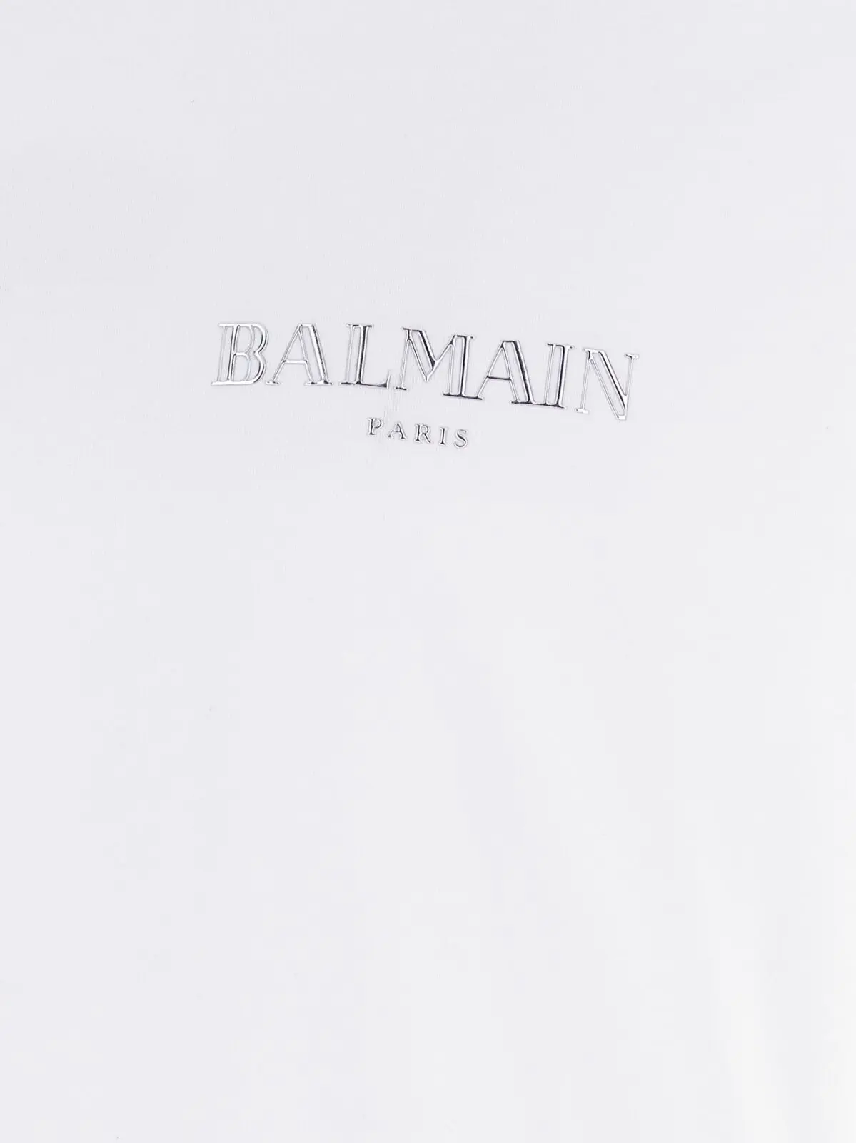Футболка Balmain Vintage в білому кольорі — це втілення елегантності та сучасного стилю. Виготовлена з 100% органічної бавовни, вона забезпечує комфорт та приємні відчуття при носінні. Ембосований гелевий логотип Balmain Vintage на передній частині підкреслює унікальність дизайну. Класичний круглий виріз і короткі рукави роблять цю футболку універсальним елементом гардеробу, який легко поєднувати з різними образами, надаючи вам статусу та впевненості.