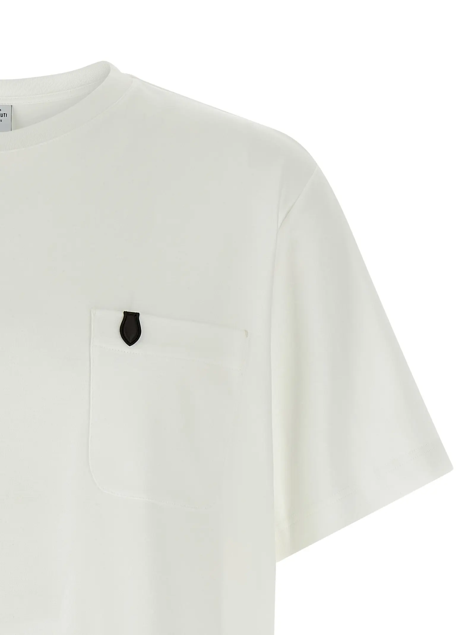 Елегантна чоловіча футболка білого кольору з колекції Berluti виготовлена з високоякісного 100% бавовняного джерсі, що забезпечує комфорт і довговічність. Стриманий дизайн з круглим вирізом та короткими рукавами доповнений вишуканою шкіряною деталлю на кишені, яка підкреслює статус і бездоганний стиль у будь-якій ситуації.
