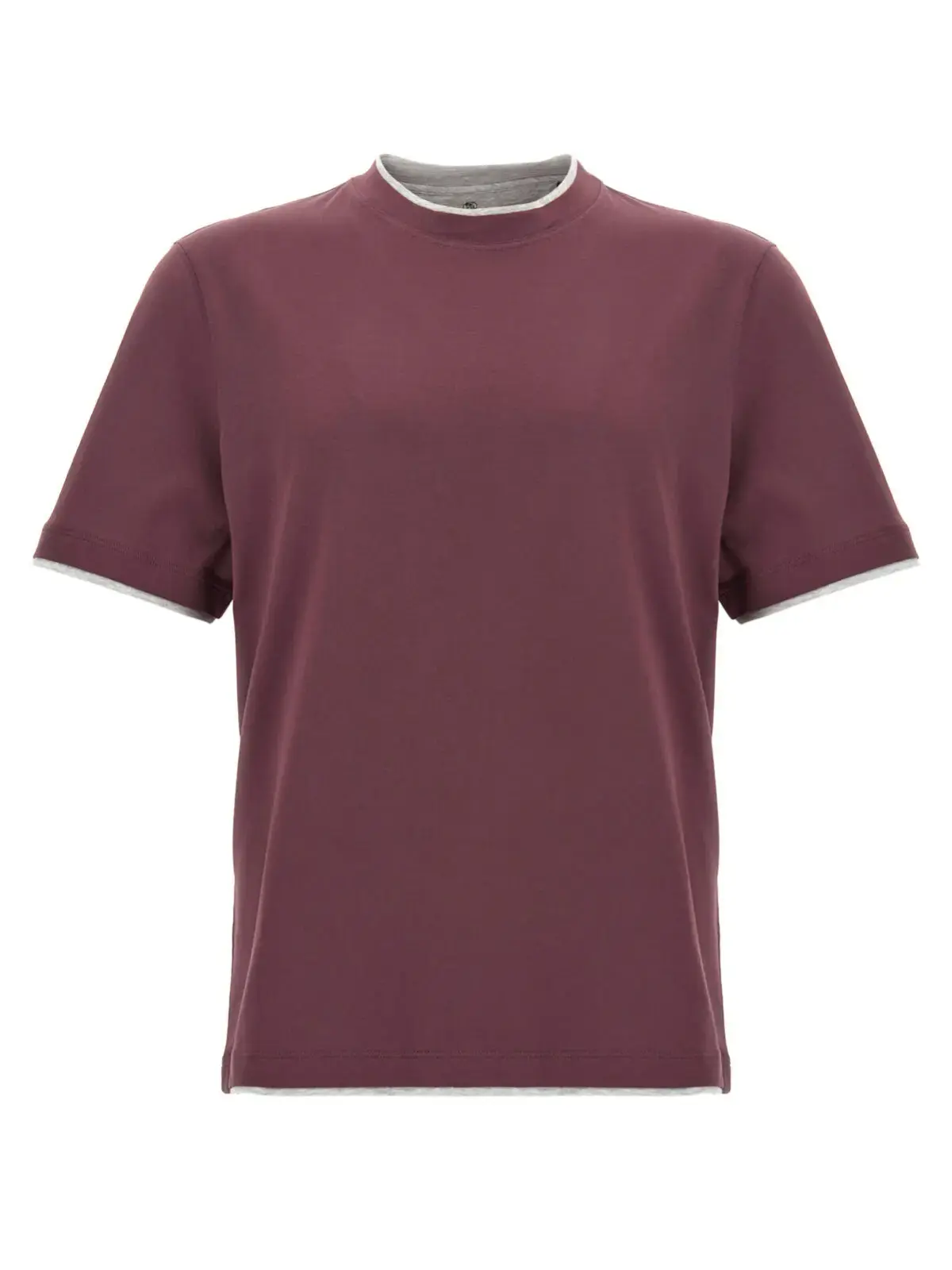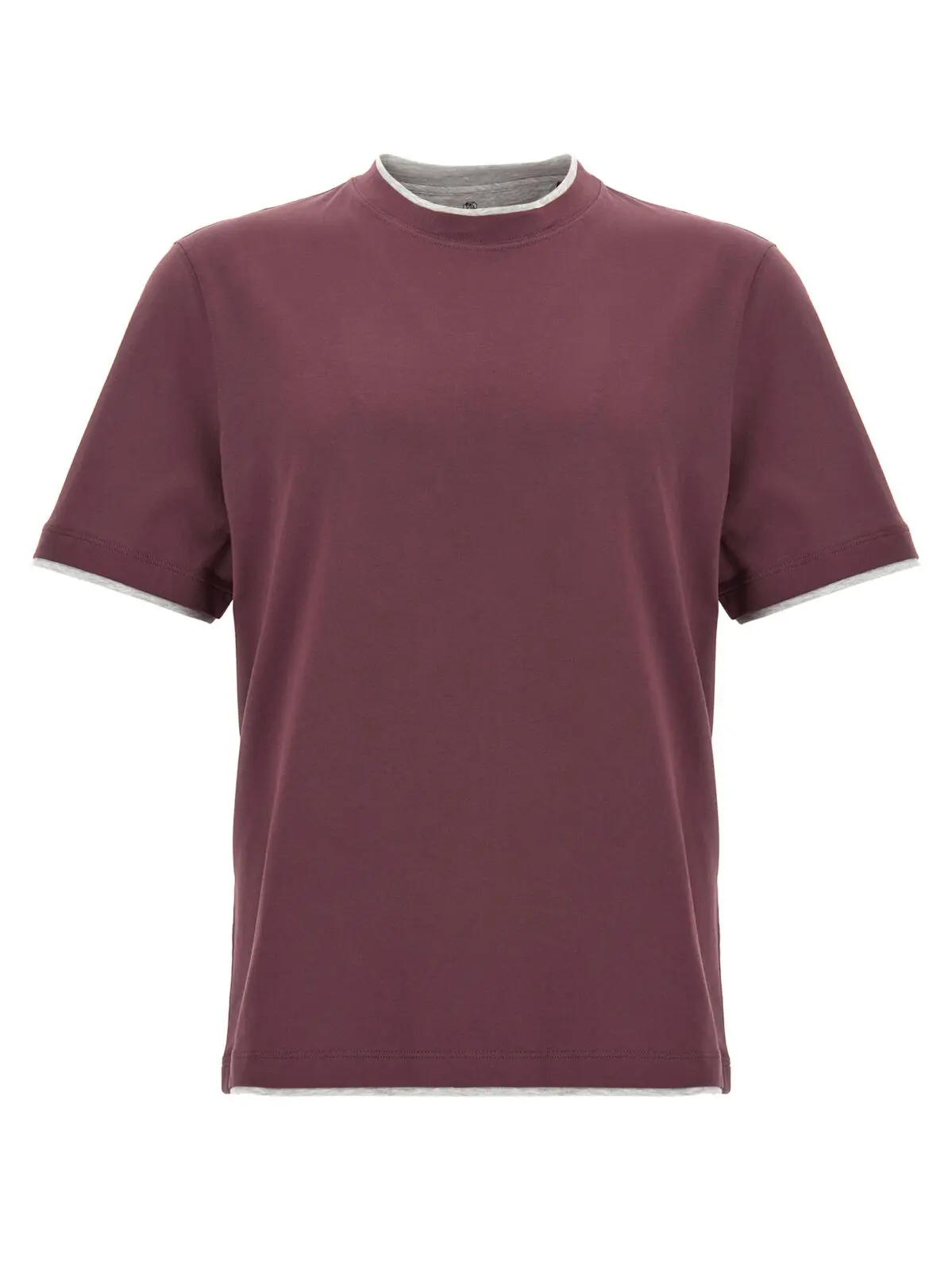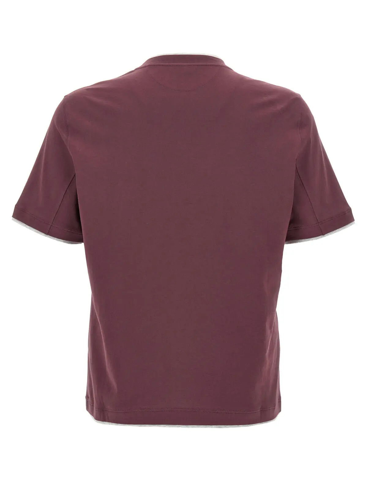 Чоловіча футболка бордового кольору з подвійним шаром оздоблення, виконана з 100% натуральної бавовни, поєднує в собі витонченість і комфорт. Її класичний круглий виріз і короткі рукави підкреслюють універсальний стиль, створюючи образ елегантності та статусу.