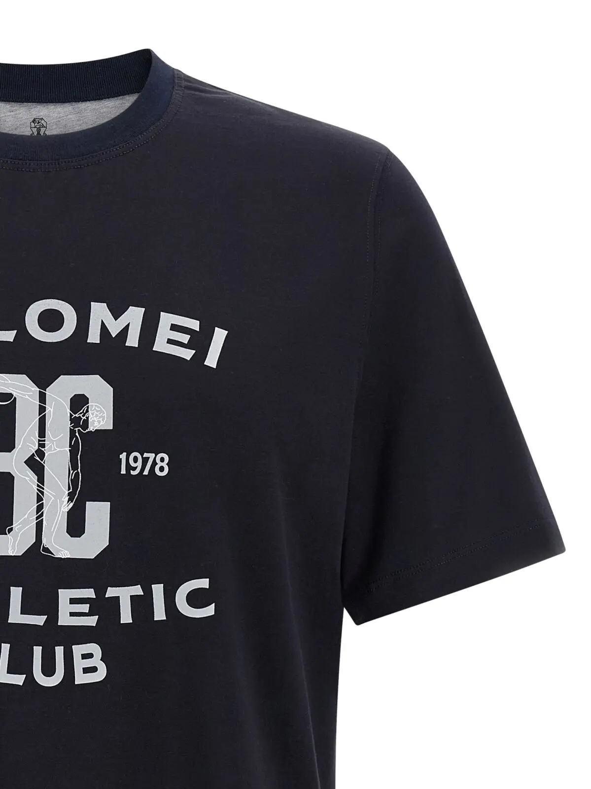 Футболка Brunello Cucinelli із витонченим принтом на передній частині виготовлена з 100% натуральної бавовни високої якості, що забезпечує комфорт і досконалу посадку. Елегантний дизайн з круглим вирізом та короткими рукавами підкреслює стиль і статус, роблячи цей виріб універсальним вибором для сучасного чоловіка.