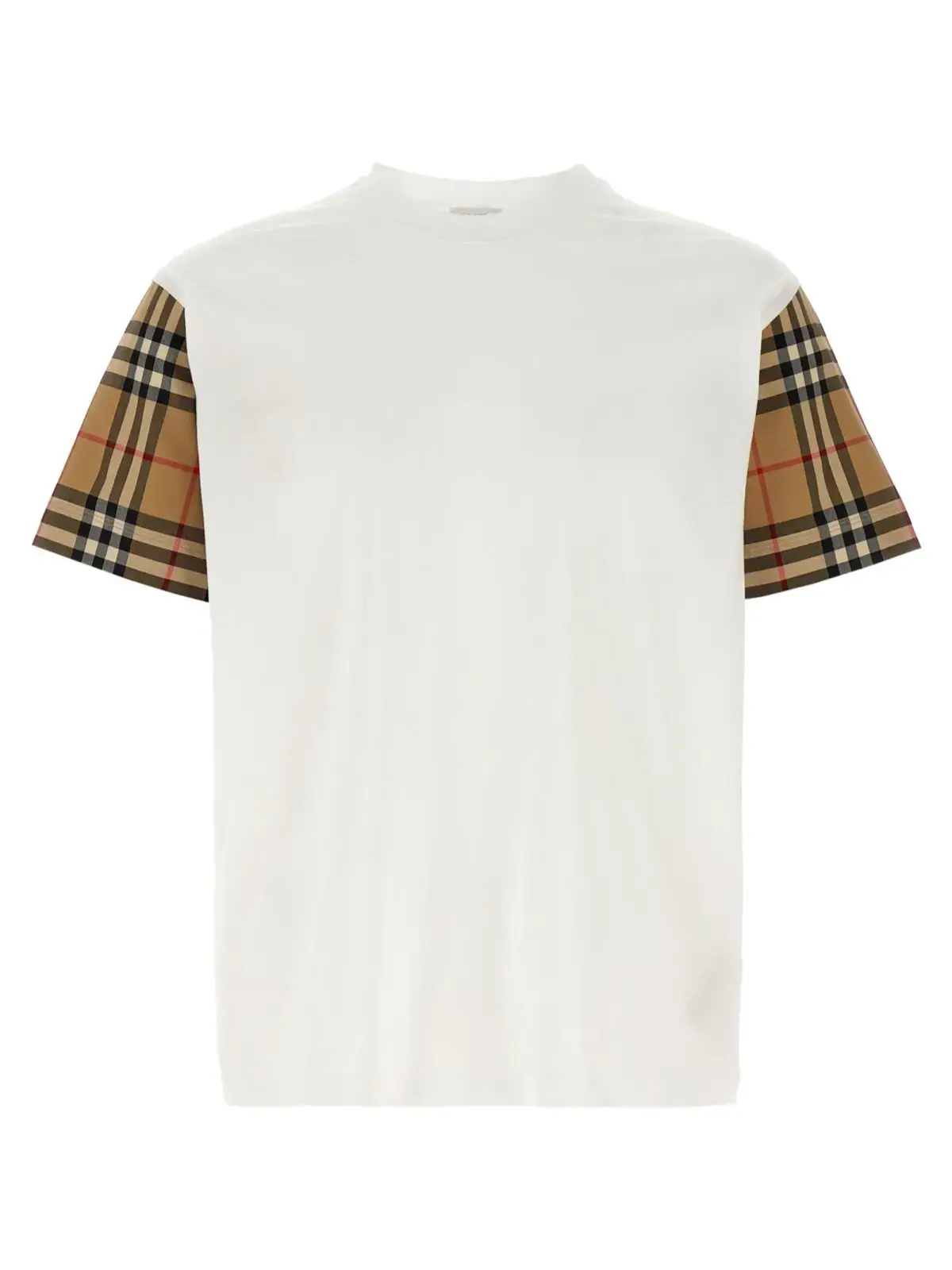 Футболка Burberry Carrick втілює в собі елегантність та сучасність. Виготовлена з 100% бавовни, вона забезпечує максимальний комфорт, а контрастні короткі рукави з вінтажним принтом у клітинку додають стильного акценту. Цей універсальний предмет гардеробу ідеально поєднується з різними образами, підкреслюючи статус власниці. Висока якість матеріалів та увага до деталей роблять цю футболку справжнім втіленням преміум сегмента моди.