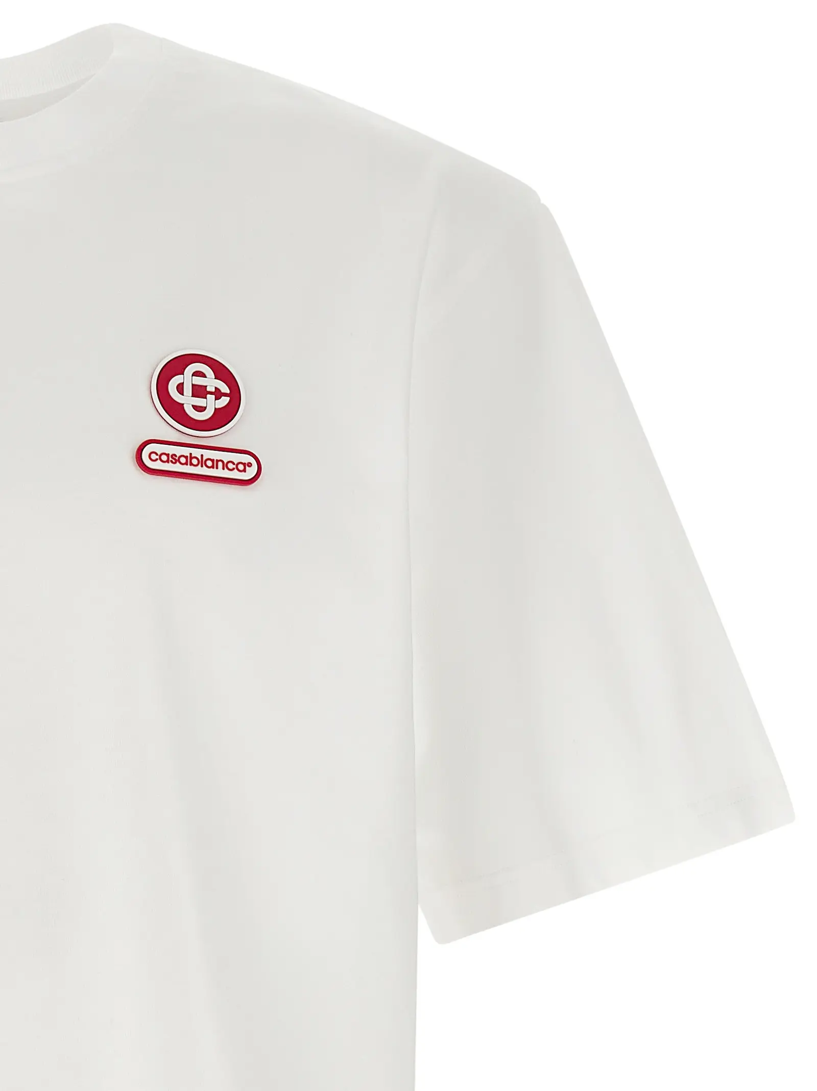 Вишукана чоловіча футболка білого кольору виготовлена з 100% органічної бавовни, поєднуючи екологічність і неперевершену якість. Унікальний дизайн із силіконовою логотипною аплікацією спереду та ззаду підкреслює сучасний стиль і статус, а класичний круглий виріз і короткі рукави забезпечують комфорт і універсальність у будь-якому образі.
