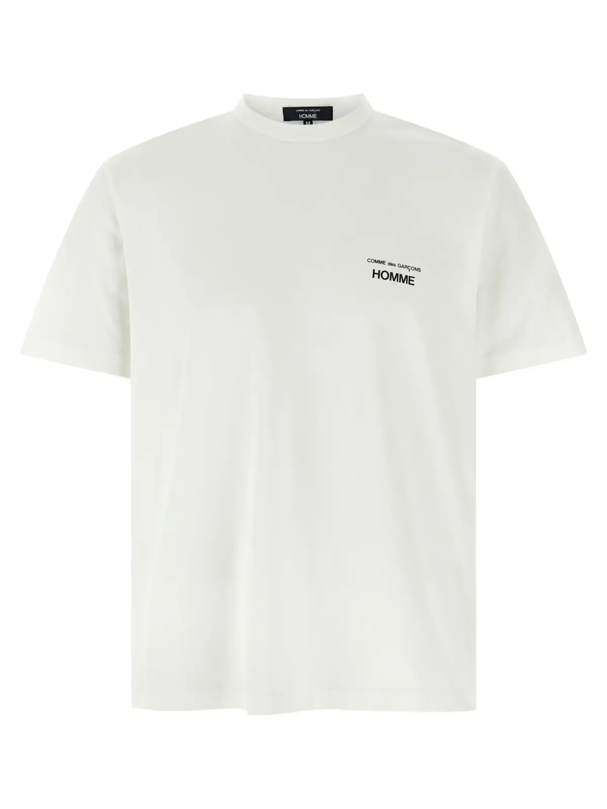 Ця чоловіча футболка з колекції Comme Des Garçons Homme виготовлена з високоякісної 100% бавовни, поєднує в собі неперевершену комфортність і стильний мінімалізм. Чорно-білий дизайн із логотипом на передній частині підкреслює сучасну елегантність, роблячи її універсальним вибором для створення статусного образу.