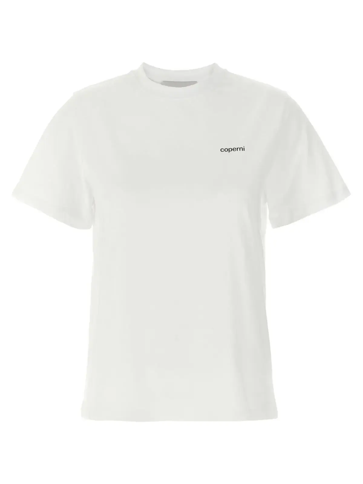 Футболка Coperni Logo в білому кольорі є ідеальним поєднанням стилю та комфорту. Виготовлена з 100% бавовни, вона забезпечує неймовірну м’якість та дихаючі властивості. Елегантний дизайн з класичним круглим вирізом та короткими рукавами доповнений стильним логотипом на передній частині, що підкреслює статус власниці. Ця універсальна річ гармонійно впишеться у будь-який гардероб, надаючи йому вишуканості та сучасного вигляду. Вибираючи цю футболку, ви обираєте якість, інноваційність та екологічність.