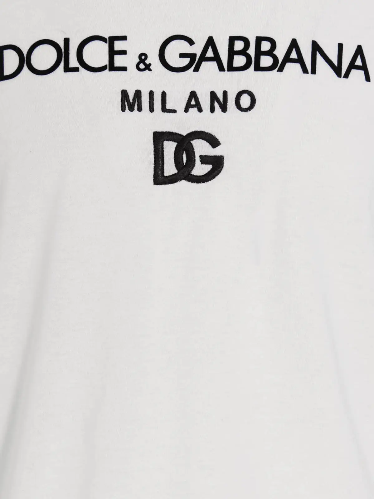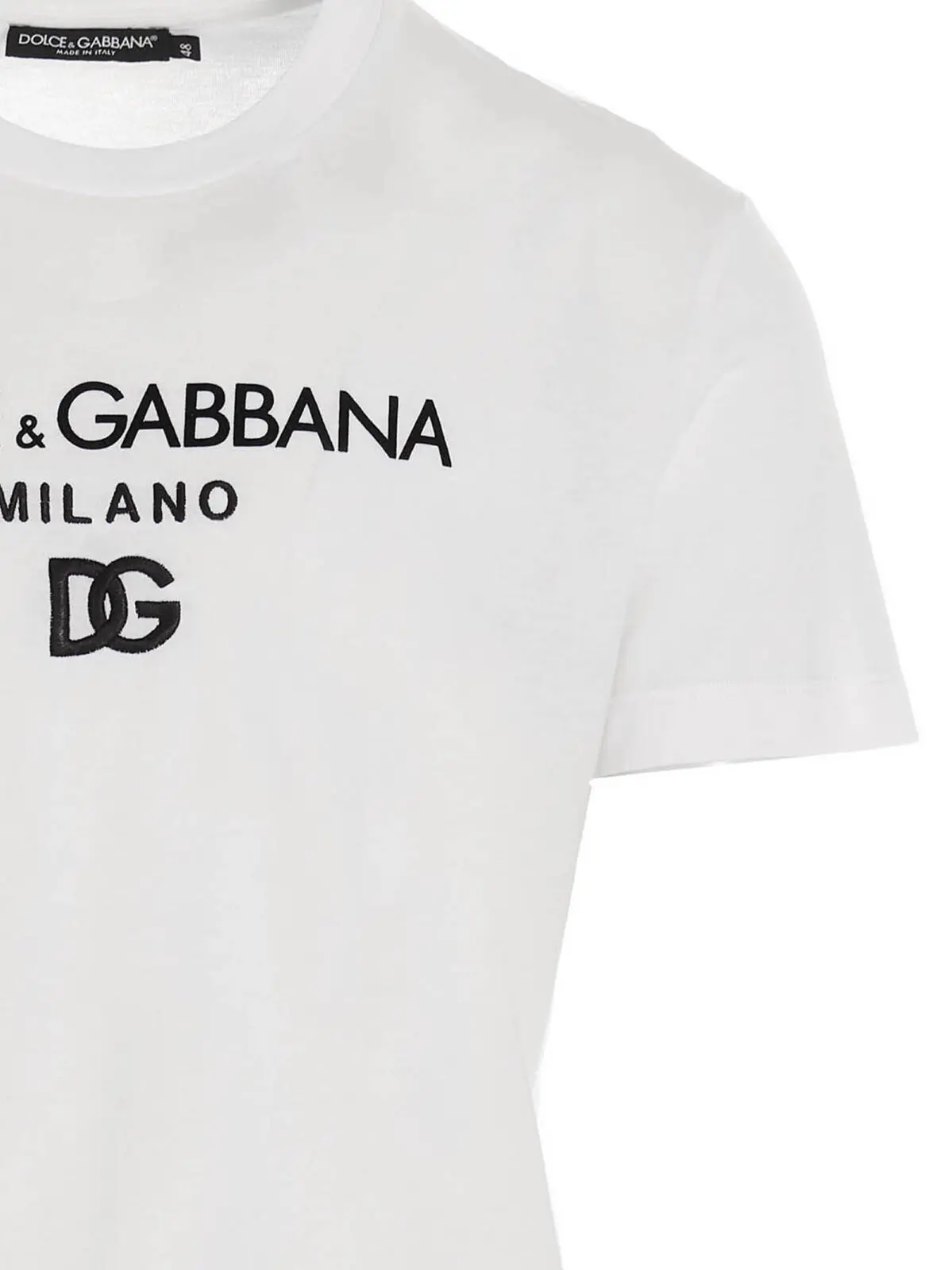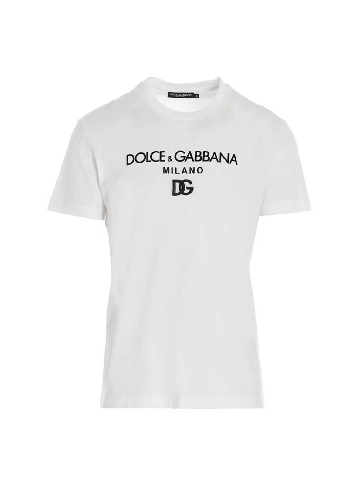Футболка DG Essential Dolce & Gabbana – це біла чоловіча футболка з 100% бавовни з оригінальним флокованим логотипом та вишивкою спереду. Має круглий виріз і короткі рукава.