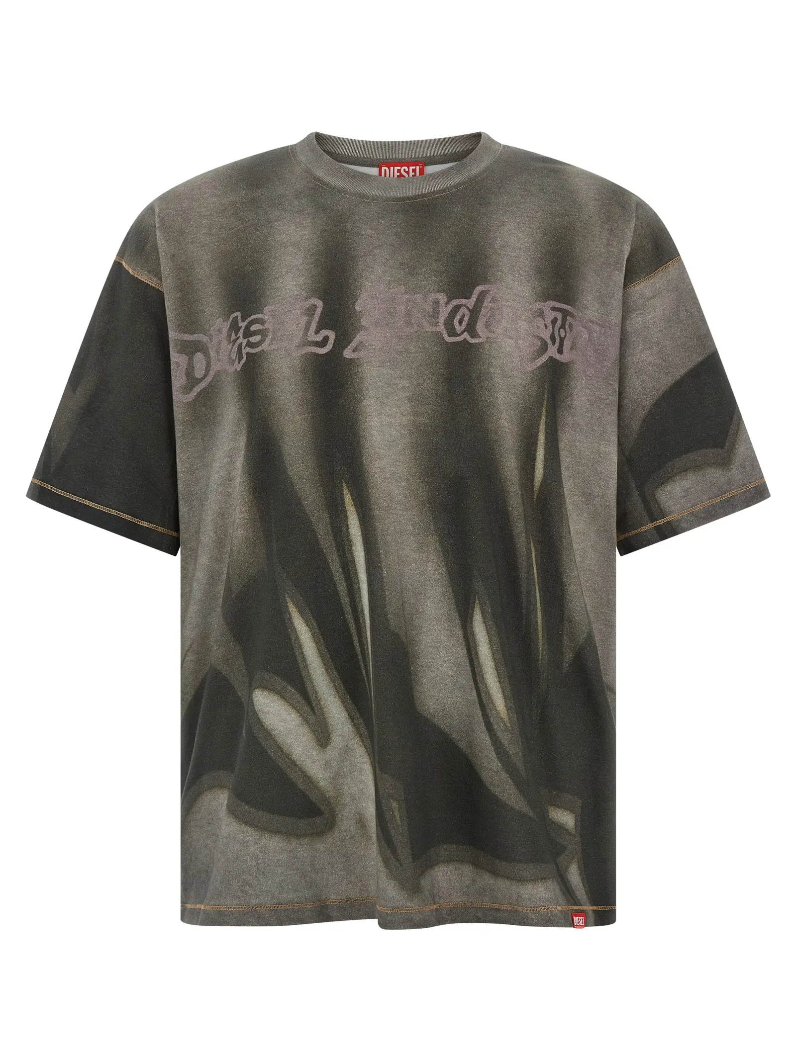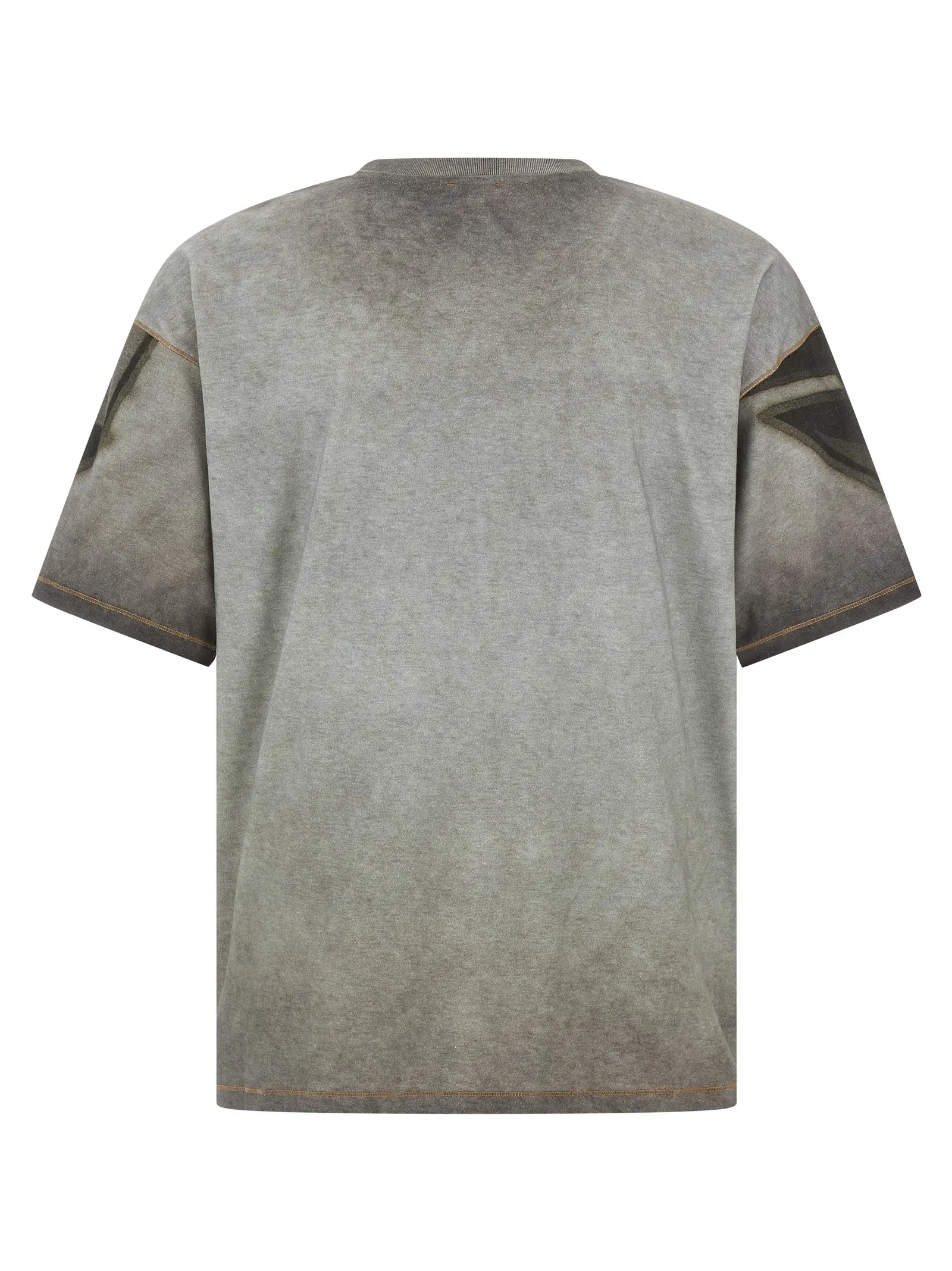 Футболка із 100% натуральної бавовни вишуканого сірого відтінку з цифровим принтом по всій поверхні, контрастною строчкою та класичним круглим вирізом. Витончений дизайн із заниженими плечима створює сучасний силует, що поєднує комфорт і стиль, підкреслюючи статус та індивідуальність.