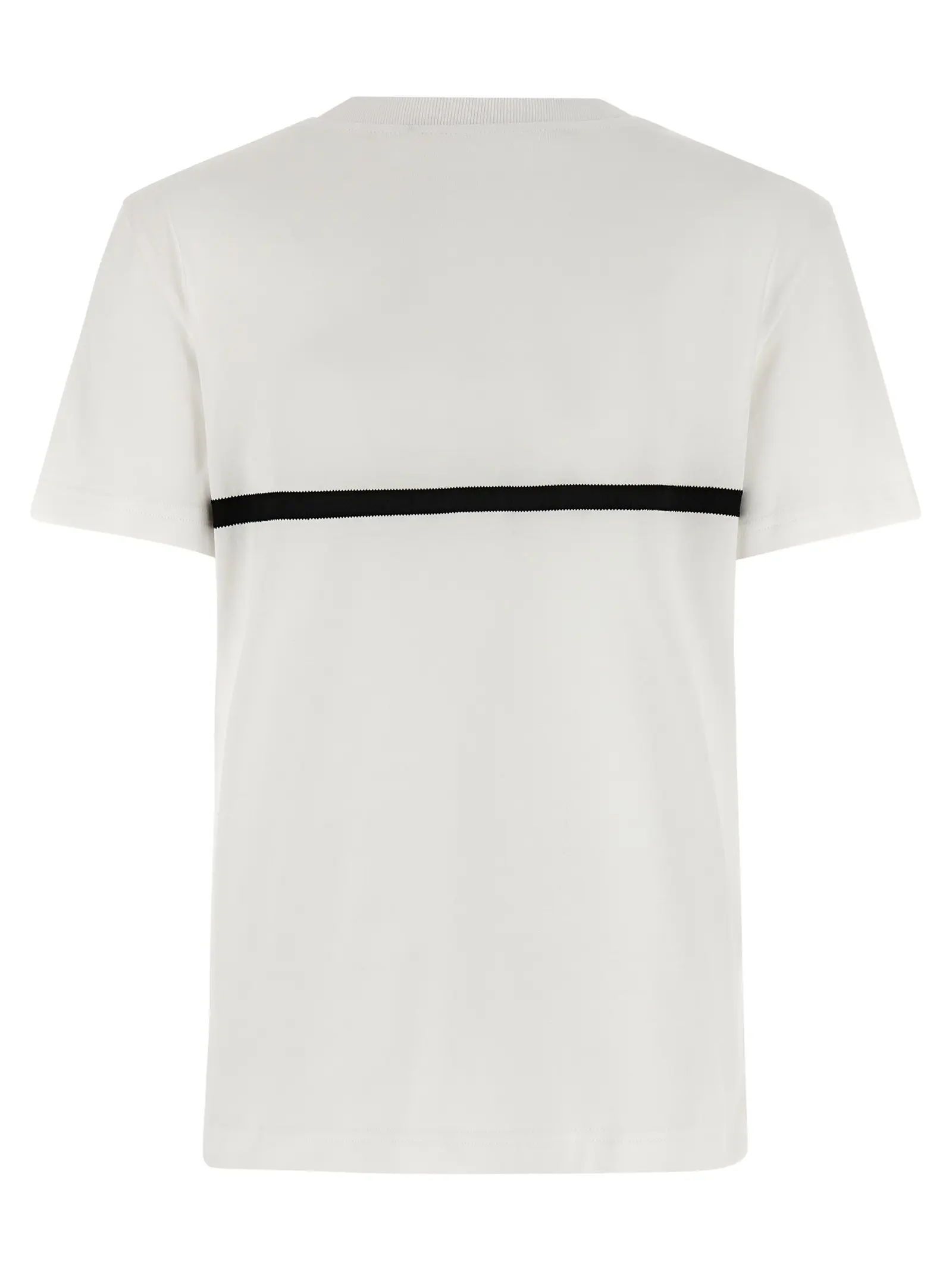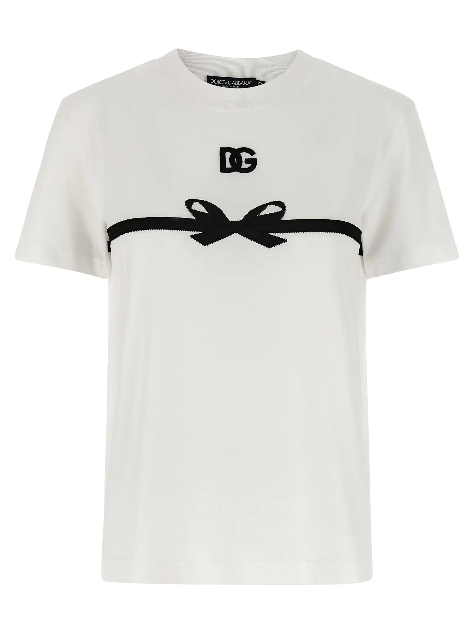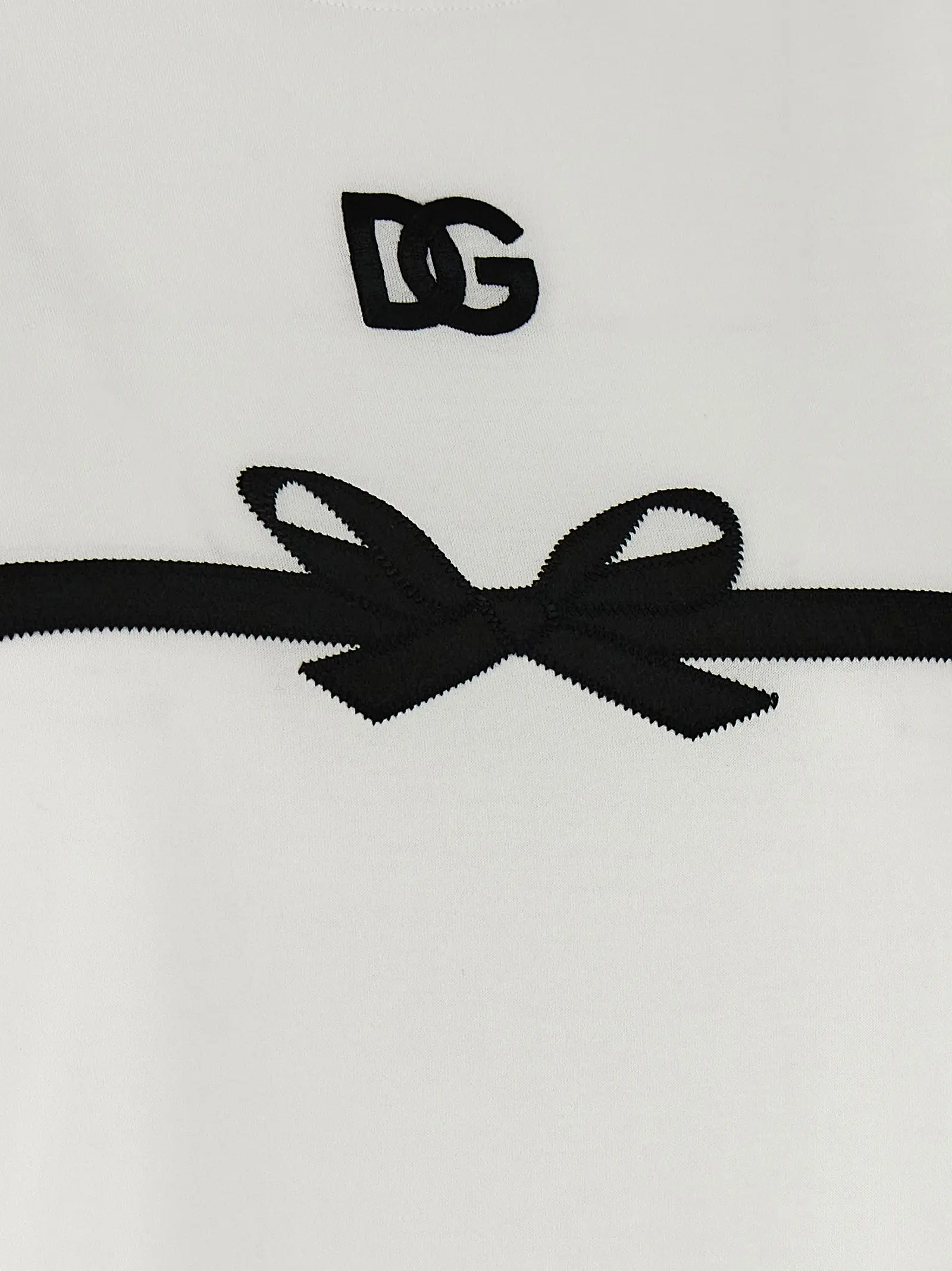Вишукана жіноча футболка з 100% натуральної бавовни поєднує класичний круглий виріз із витонченим вишитим логотипом спереду та декоративною стрічкою з атласним бантом. Її інноваційний дизайн зі стильними рукавами надає образу неповторного шарму, підкреслюючи статус і бездоганний смак.