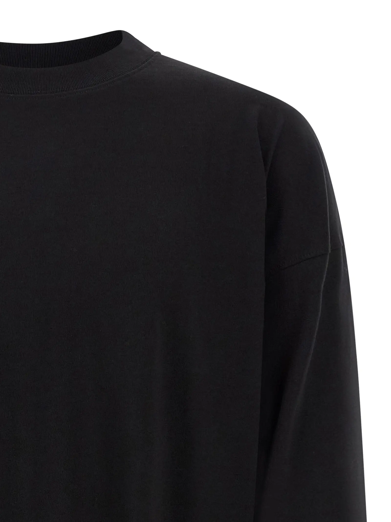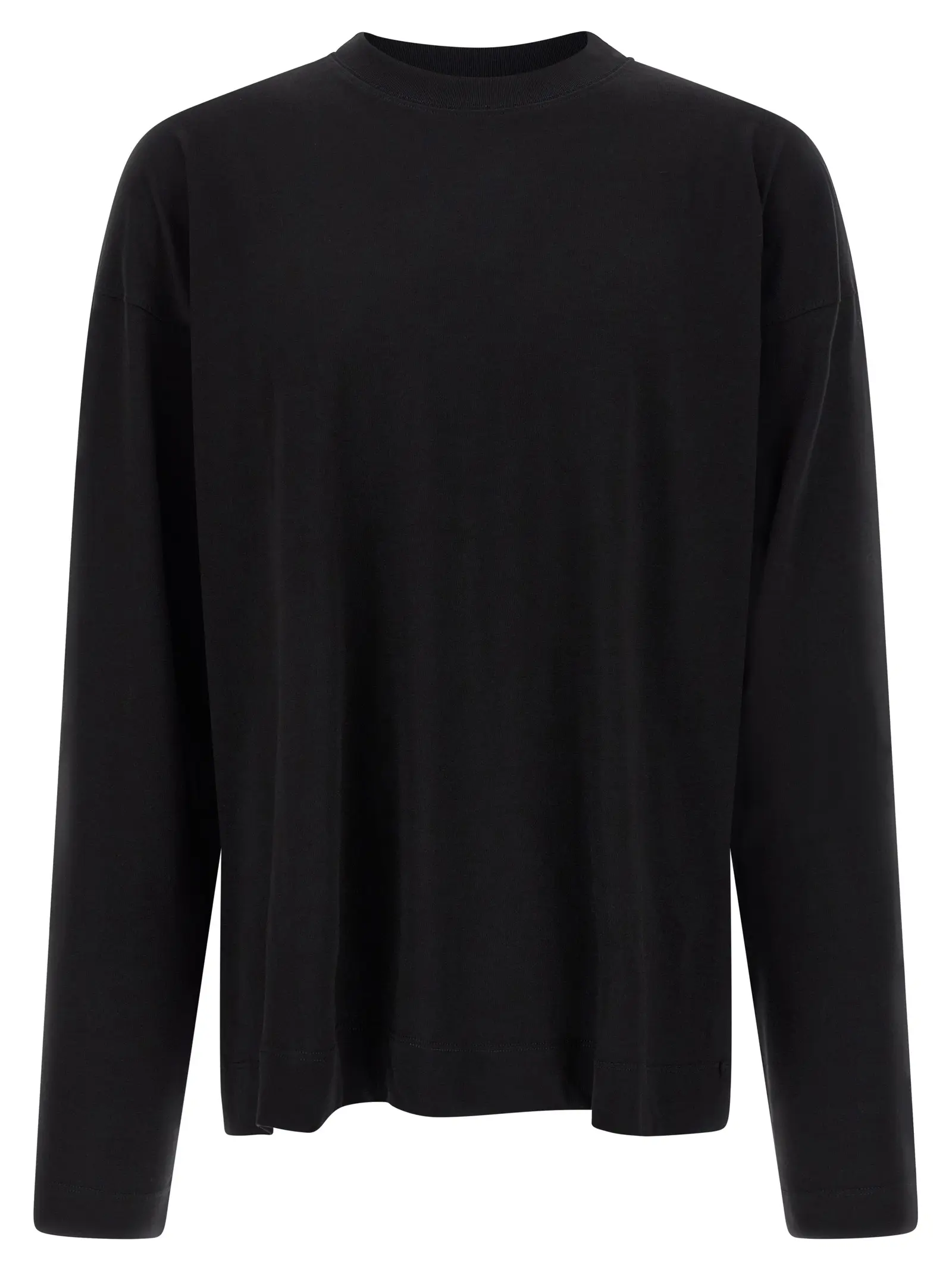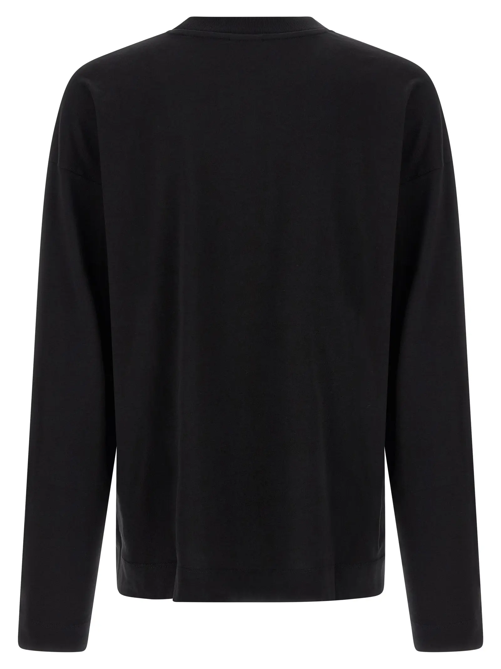 Чорна чоловіча футболка з довгими рукавами та заниженими плечима виготовлена з високоякісної 100% бавовни, що забезпечує комфорт і довговічність. Вишуканий мінімалістичний дизайн підкреслює статус і бездоганний стиль, поєднуючи інноваційність та універсальність у повсякденному образі.