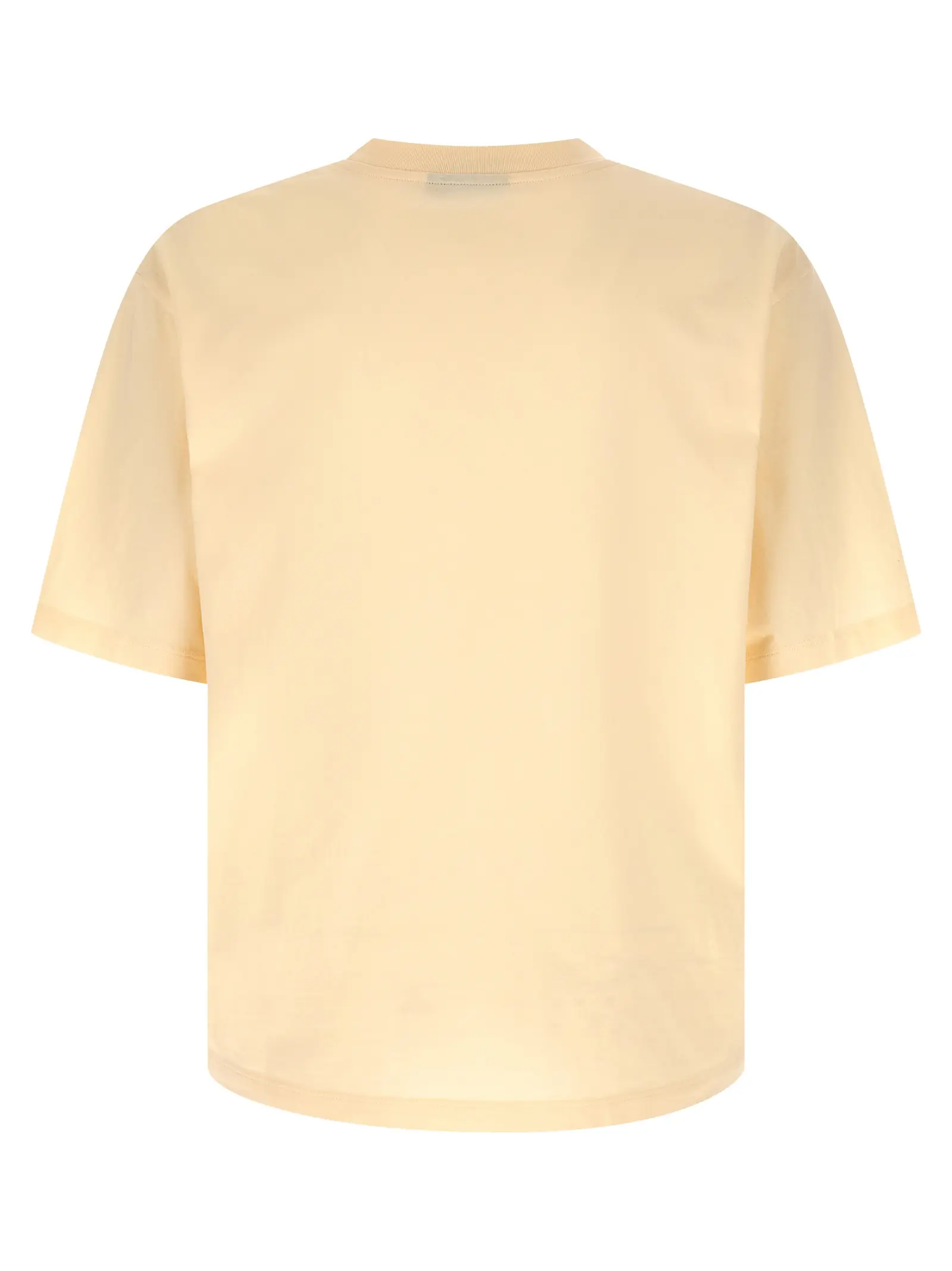 Вільний силует із асиметричним краєм та невеликими бічними розрізами створює динамічний образ, що виходить за межі звичних стандартів. Натуральне бавовняне джерсі приємно прилягає до тіла, забезпечуючи природну циркуляцію повітря протягом усього дня. Виразний принт на грудях додає виробу індивідуальності, а класичний круглий виріз м’яко завершує дизайн, роблячи акцент на невимушеному стилі та винятковому комфорті.