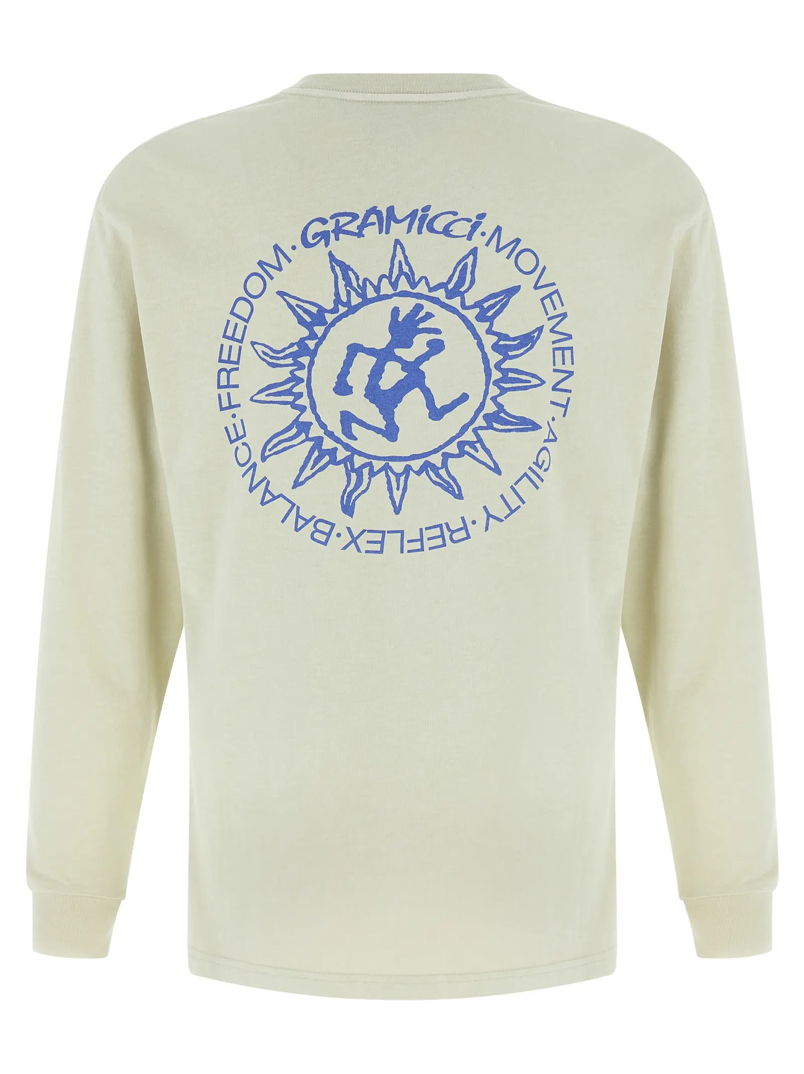 Елегантна чоловіча футболка GRAMICCI Sun виконана з органічної бавовни середньої щільності з приємним сухим дотиком, має стильний принт спереду та ззаду, круглу горловину і довгі манжети. Вона поєднує високу якість, екологічність і універсальний дизайн, підкреслюючи ваш статус та вишуканий стиль.