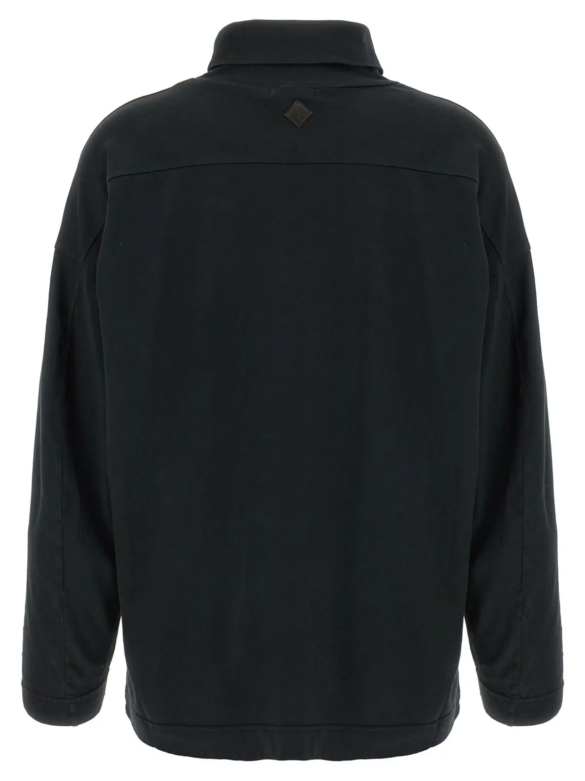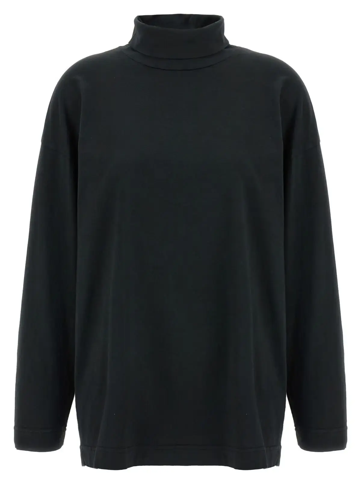 Чорна жіноча футболка з високим коміром і довгими рукавами, виготовлена з 100% натуральної бавовни, поєднує витонченість і комфорт. Елегантний дизайн доповнений лаконічною логотипною нашивкою на спині підкреслює статус і сучасний стиль, роблячи цю річ універсальним вибором для будь-яких образів.