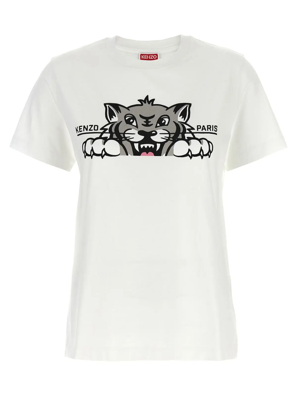 Вишукана жіноча футболка з колекції Happy Tiger виготовлена з високоякісної 100% бавовни, що забезпечує комфорт і довговічність. Легкий вільний крій та класичний круглий виріз гармонійно поєднуються з елегантним принтом спереду і логотипом на спині, підкреслюючи стиль і статус свого власника.