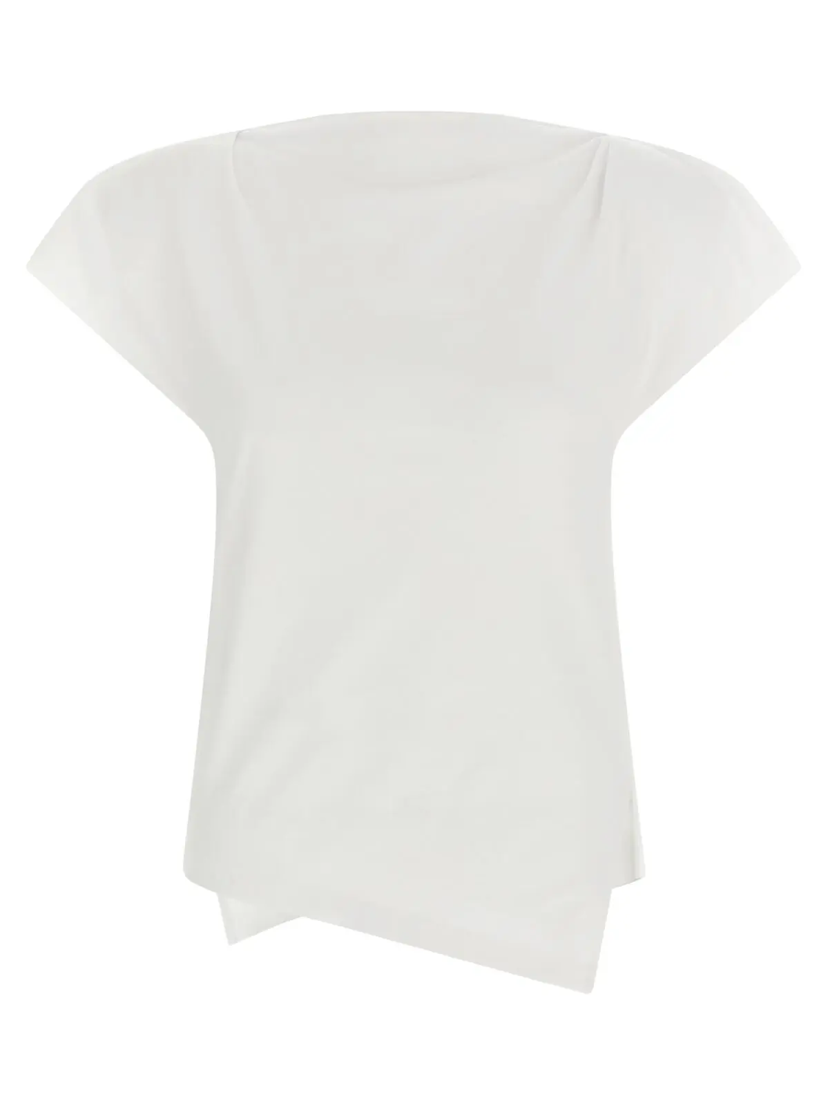 Вишукана жіноча футболка з органічної бавовни від Isabel Marant вирізняється асиметричним кроєм, елегантним човниковим вирізом та знімними підплічниками, що поєднує інноваційність і комфорт. Її стильні деталі та екологічний матеріал підкреслюють статус і універсальність образу.