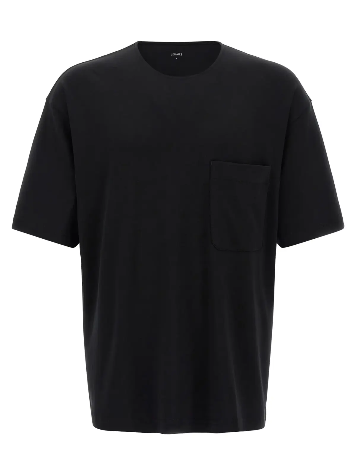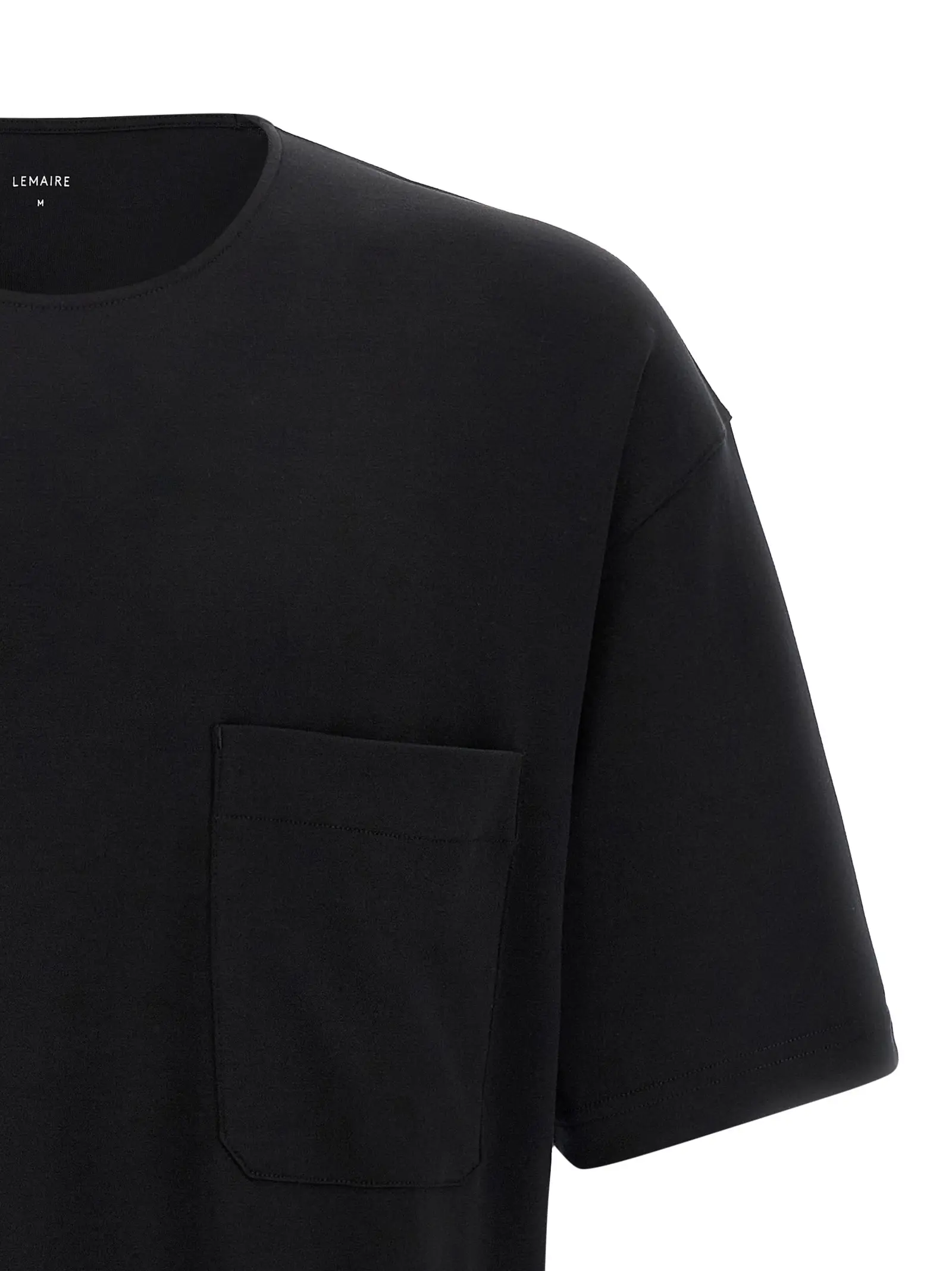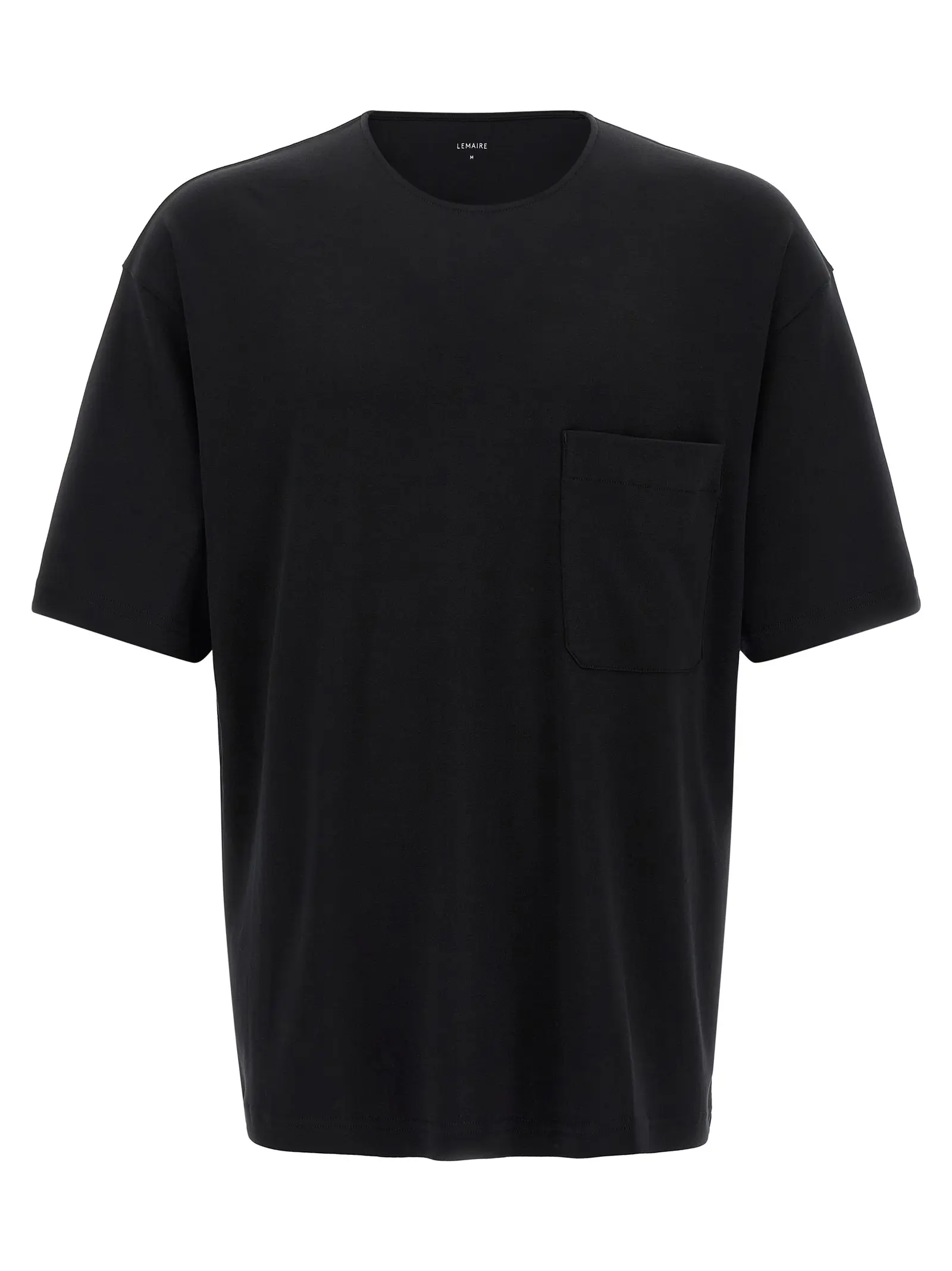 Чорна чоловіча футболка з інтерлокового джерсі з бавовни та шовку поєднує в собі м’якість і вишуканість матеріалів, має круглий виріз, нагрудну кишеню та стильний крій з опущеними плечима. Вона вирізняється бездоганною якістю, інноваційним дизайном і універсальністю, підкреслюючи статус і вишуканий стиль власника.