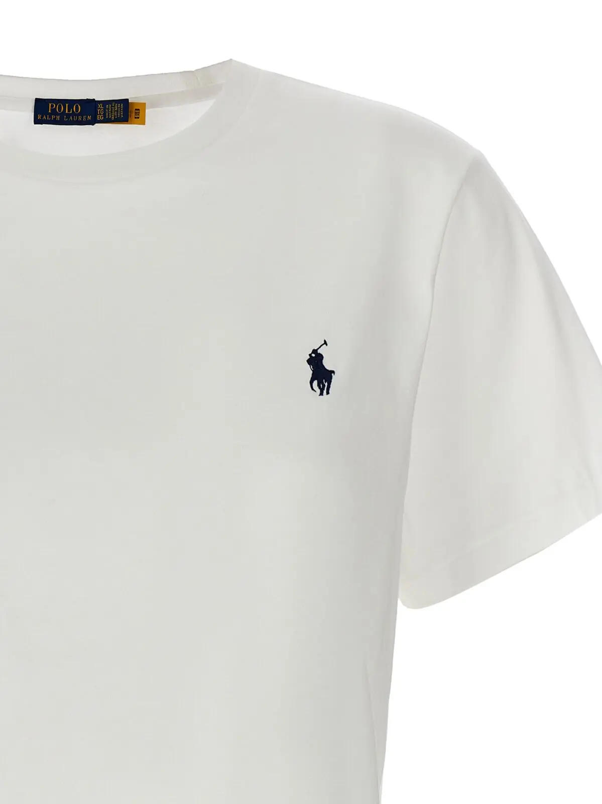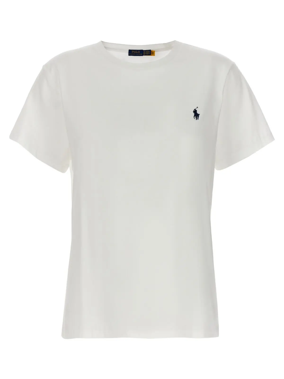 Футболка Polo Ralph Lauren з білим кольором для жінок з вишитим логотипом на передній частині. Виготовлена з 100% бавовни, має круглий виріз, короткі рукава.