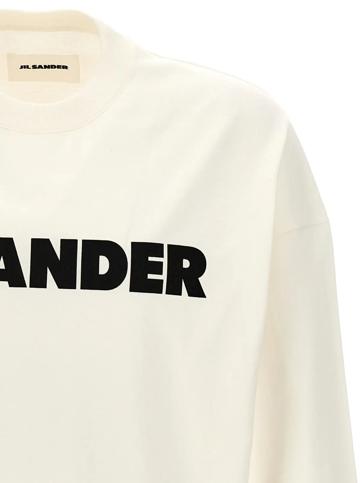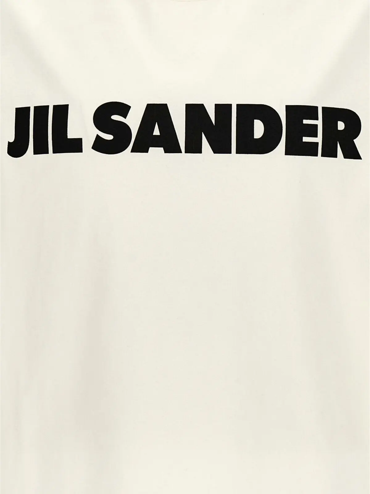 Чорно-біла чоловіча футболка від Jil Sander з принтом логотипу на передній частині. Виготовлена з 100% бавовни, має круглий виріз і довгі рукава. Ця футболка стане стильним доповненням до вашого гардеробу.