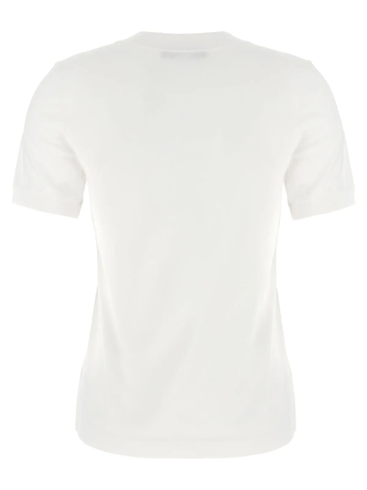 Вишукана жіноча футболка білого кольору з високоякісної бавовни, оздоблена вишитою емблемою та принтом Maiolica спереду, поєднує класичний крій із круглим коміром і короткими рукавами, підкреслюючи статусність, стиль і універсальність у будь-якому образі.