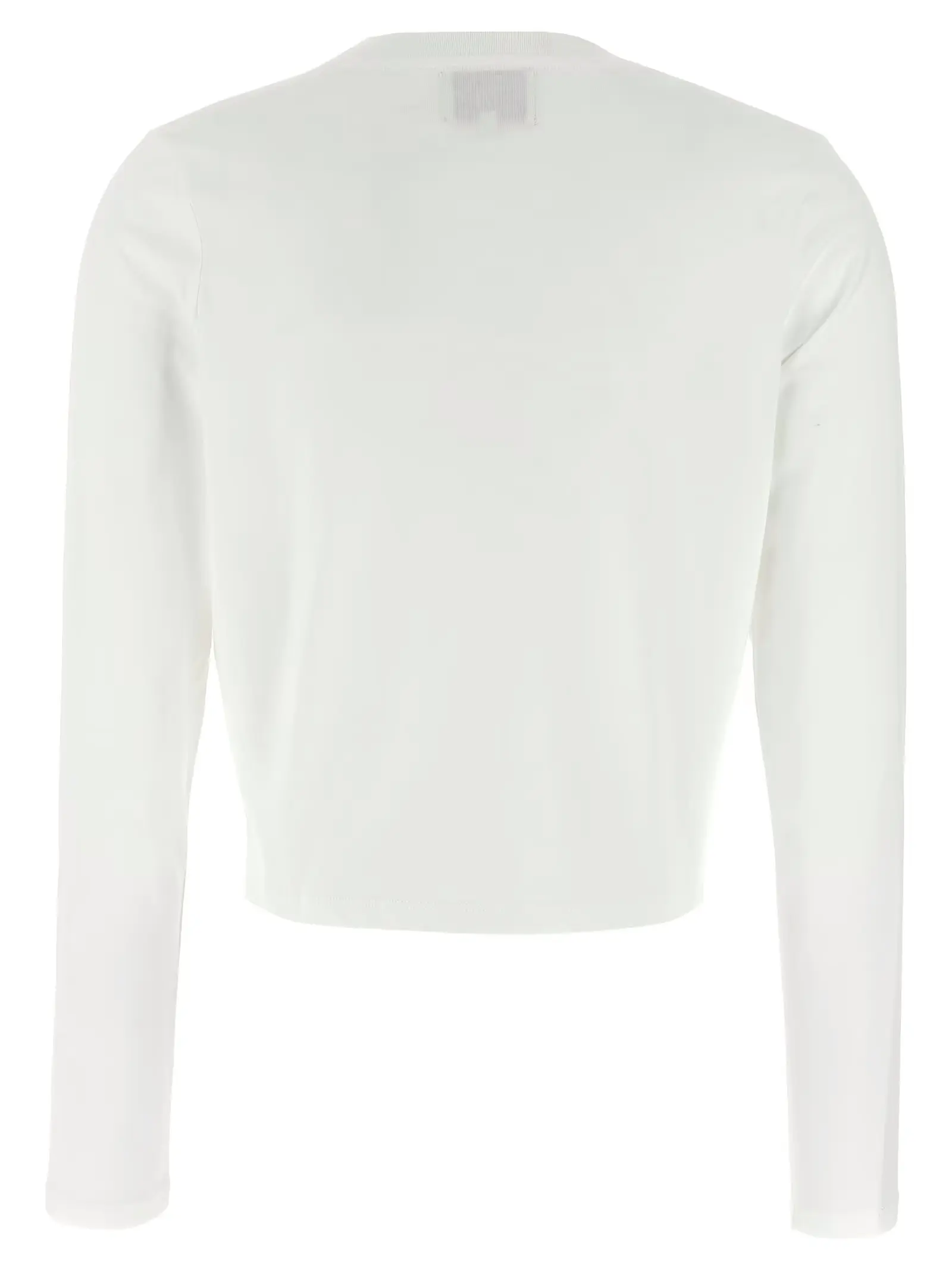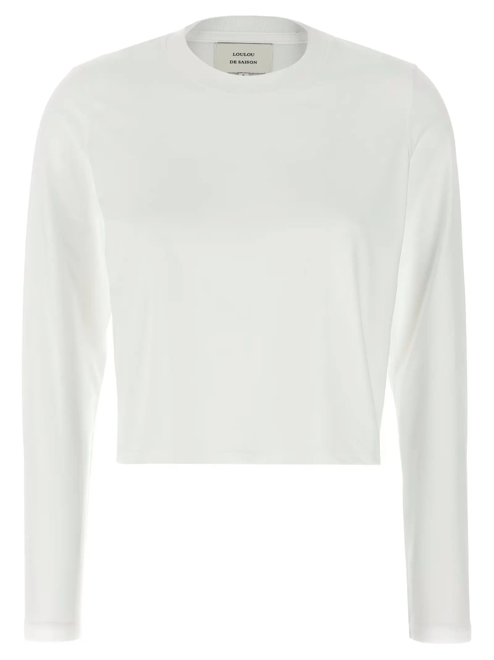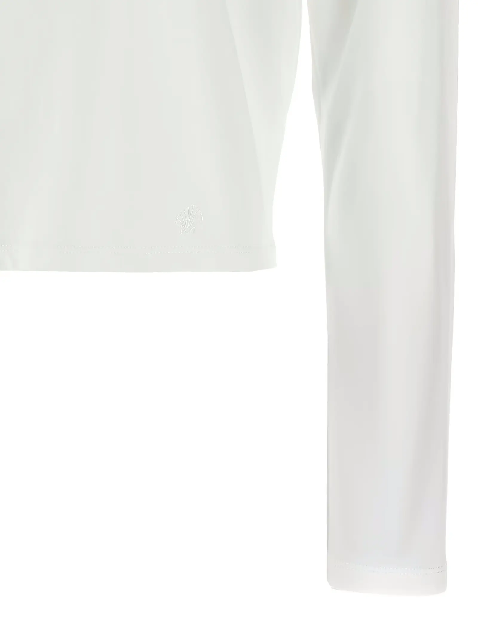 Вишукана жіноча футболка білого кольору, виготовлена з 100% супіма бавовни, що забезпечує надзвичайну м’якість і довговічність. Класичний кроп-модель із круглим коміром і довгими рукавами підкреслює елегантність, а тонке тон в тон вишивання логотипу додає вишуканості, створюючи гармонійний образ високого стилю та статусу.