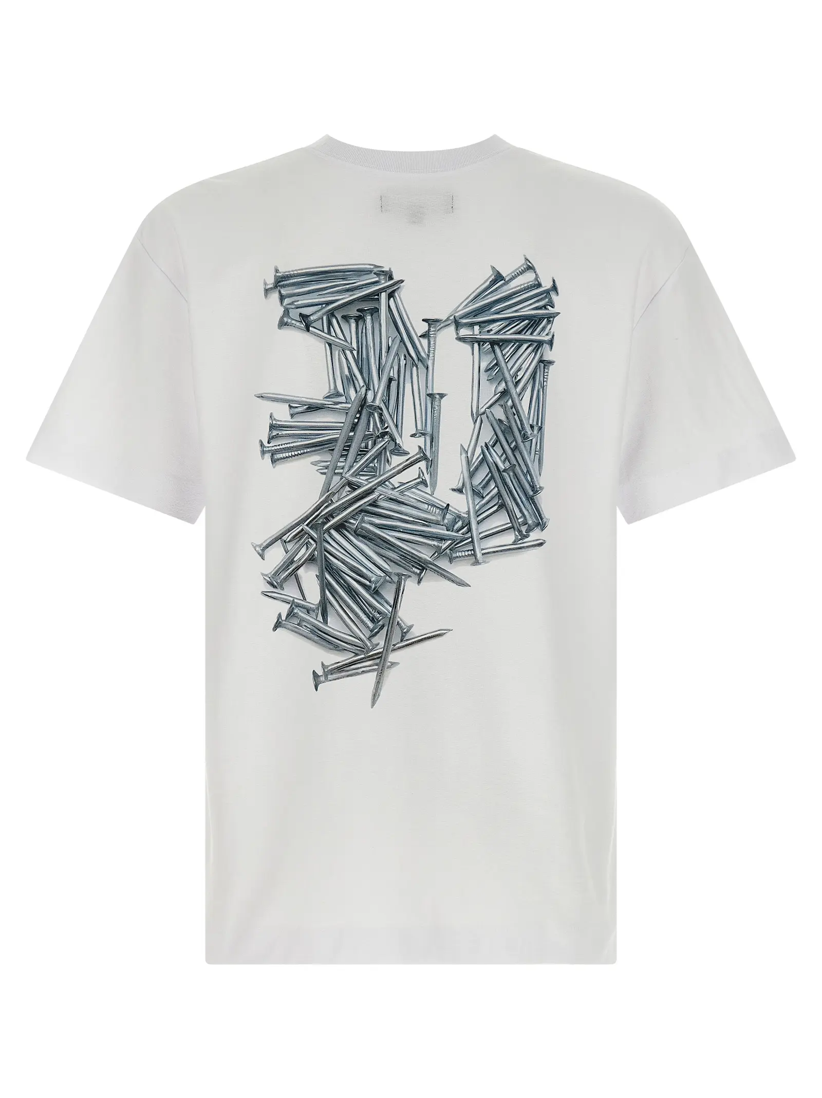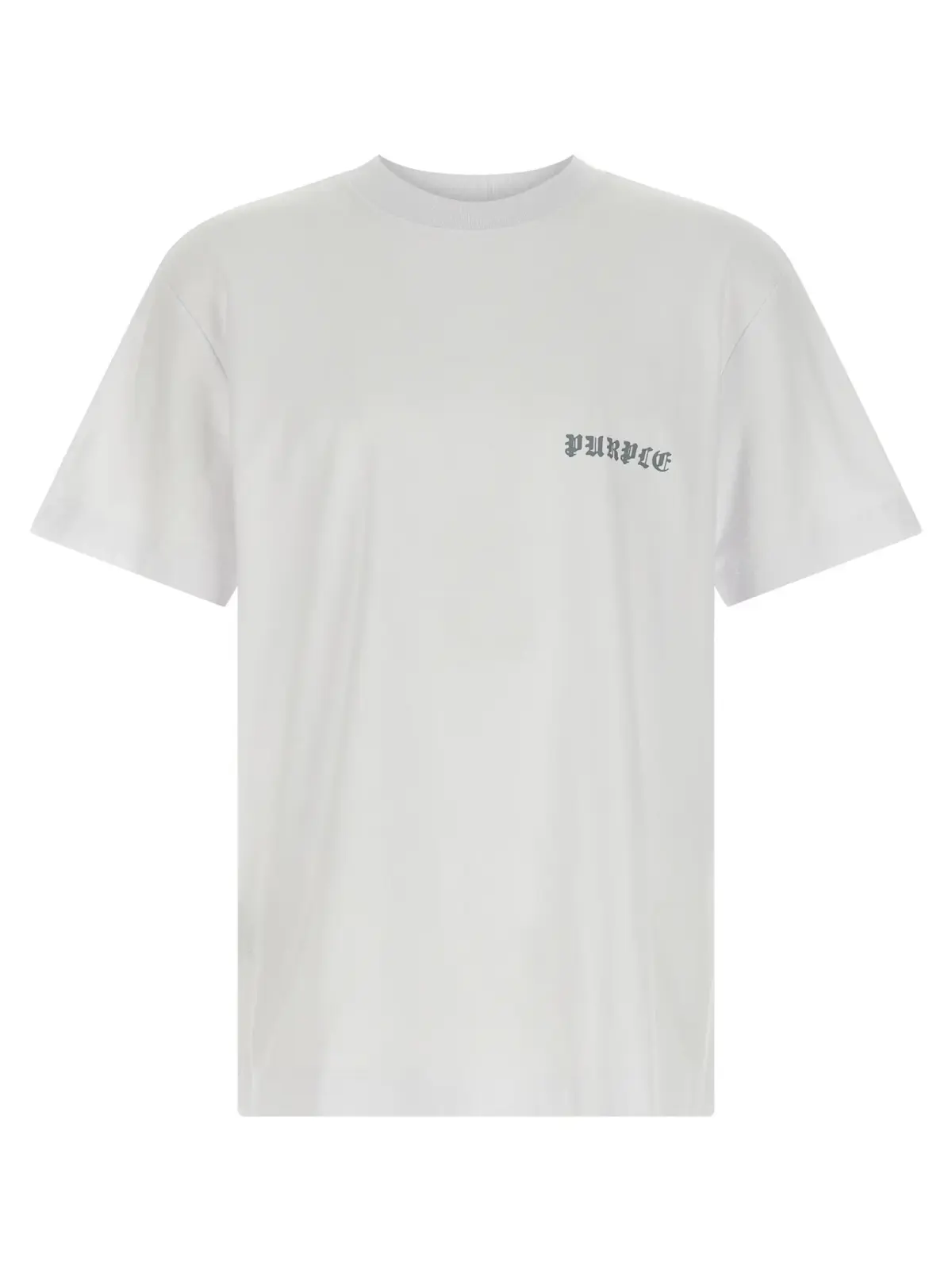 Чоловіча футболка білого кольору з текстурованої бавовняної джерсі, оздоблена стильним принтом спереду та ззаду, поєднує комфорт і сучасний дизайн. Витончений крій із круглим вирізом та заниженими плечима підкреслює статус і універсальність, створюючи неперевершений образ преміум-класу.
