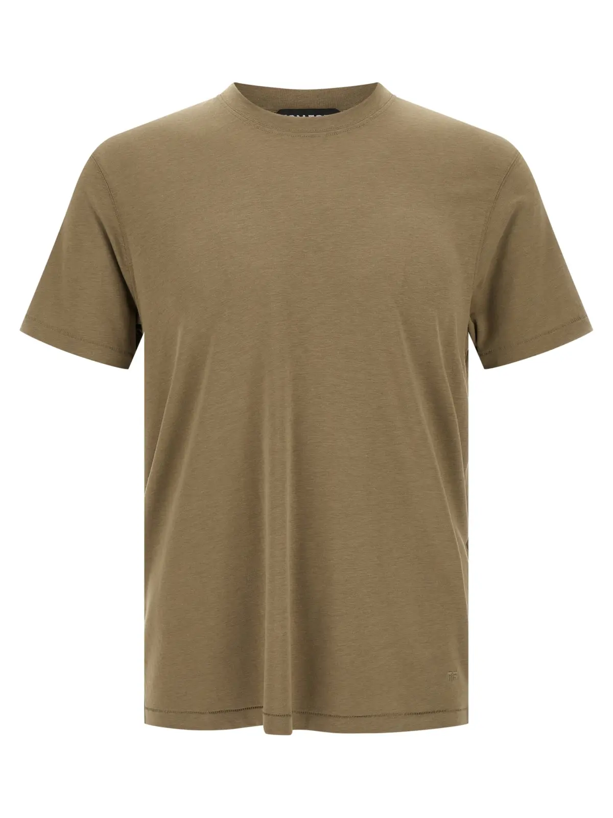Вишитий нитками в тон символ на грудях створює ледь помітний рельєф, зберігаючи візуальний спокій і лаконічність форми. Суміш волокон ліоцелу й бавовни надає тканині природну прохолоду та шовковисту м’якість. Традиційна кругла горловина завершує стриманий крій з короткими рукавами, орієнтований на функціональність і виразну чіткість кожної лінії.