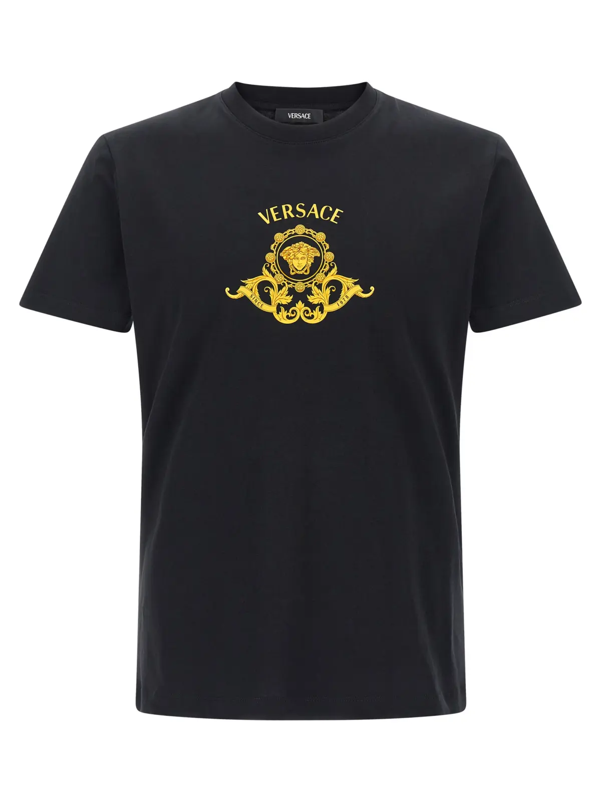 Ця виняткова модель переосмислює повсякденну естетику крізь призму високої моди, пропонуючи відчуття безумовного комфорту. Особлива щільність джерсі з компактної бавовни створює бездоганно структурований силует, що ідеально тримає форму протягом дня. Центральним акцентом стає величний принт з геральдичним мотивом, який перетворює лаконічну базу з круглим вирізом на справжній маніфест стилю. Це втілення преміальної якості, де кожен міліметр фактури випромінює впевненість і безкомпромісну розкіш.