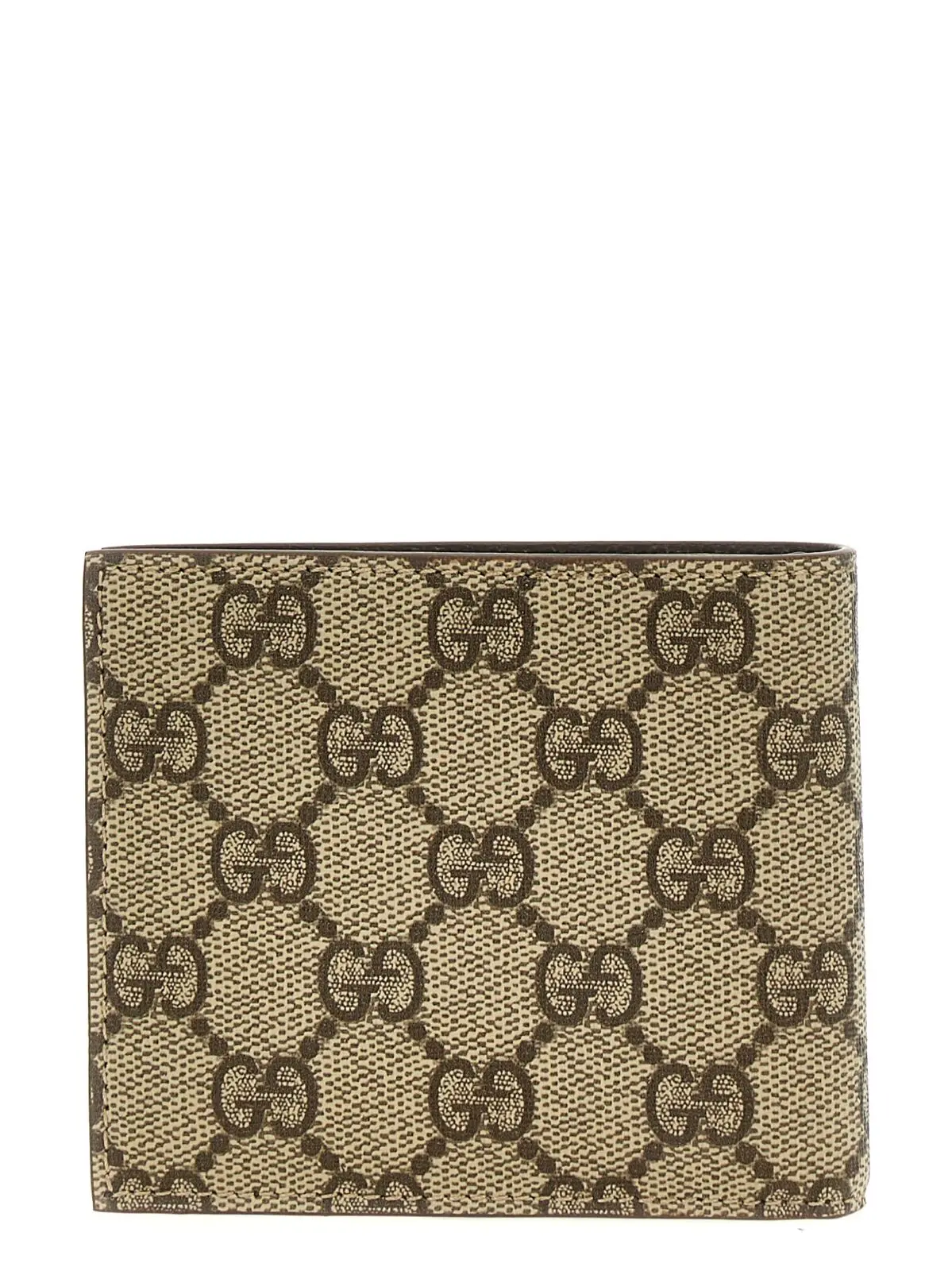 Гаманець Gucci Bi-Fold у бежевому кольорі вражає своєю елегантністю та стильним дизайном, виготовлений з високоякісної GG Supreme тканини, що поєднує в собі 60% поліуретану, 20% бавовни та 20% поліестеру. Металевий логотип на передній частині підкреслює престиж бренду. Цей гаманець не лише практичний завдяки своїй функціональності з форматом для карток та купюр, але й інноваційний у використанні сучасних матеріалів, що відповідають стандартам екологічності. Його універсальність робить його ідеальним аксесуаром для чоловіків, які цінують якість, статус та бездоганний стиль.