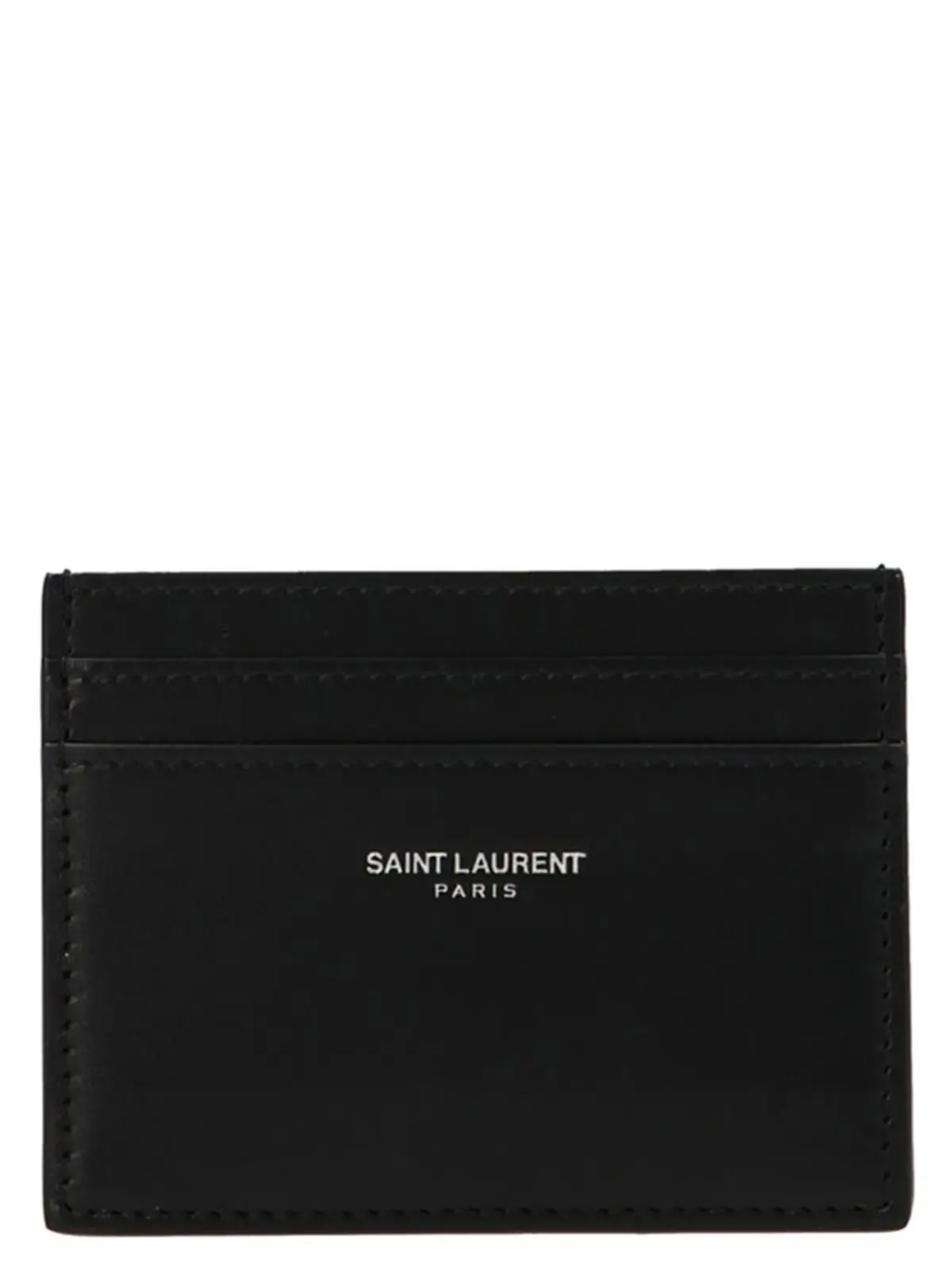 Чорний чоловічий гаманець від Saint Laurent з логотипом. Виготовлений з 100% телячої шкіри. Має відділення для карток та нанесений логотип бренду.