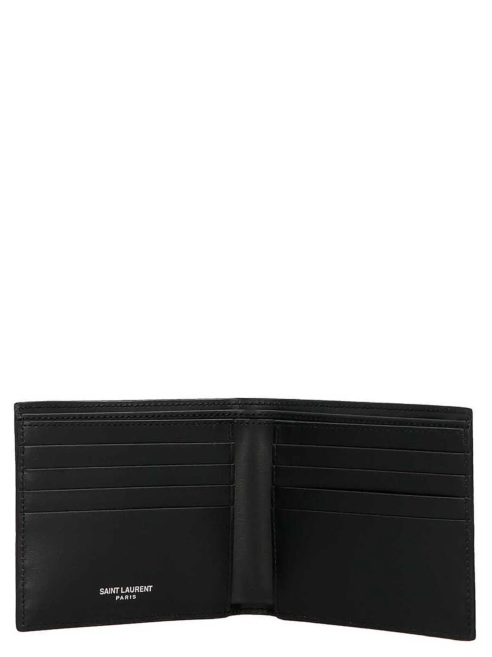 Гаманець Saint Laurent East/West в елегантному чорному кольорі, виготовлений з високоякісної гладкої телячої шкіри, втілює в собі вишуканість та стиль. Його витончений дизайн доповнений мікроскопічним сріблястим логотипом монограми, що надає виробу особливого шарму й статусу. Інноваційна структура забезпечує не лише естетичну привабливість, а й функціональність: гаманець має достатньо відділень для карток, банкнот та монет, що робить його ідеальним супутником для сучасного чоловіка. Виготовлений з використанням екологічних практик, він підкреслює вашу відповідальність перед навколишнім середовищем. Цей гаманець – це не просто аксесуар, а символ розкоші та елегантності, який підходить для будь-якої ситуації, від ділових зустрічей до вечірніх виходів. Оберіть Saint Laurent East/West і відчуйте себе на висоті у світі моди.
