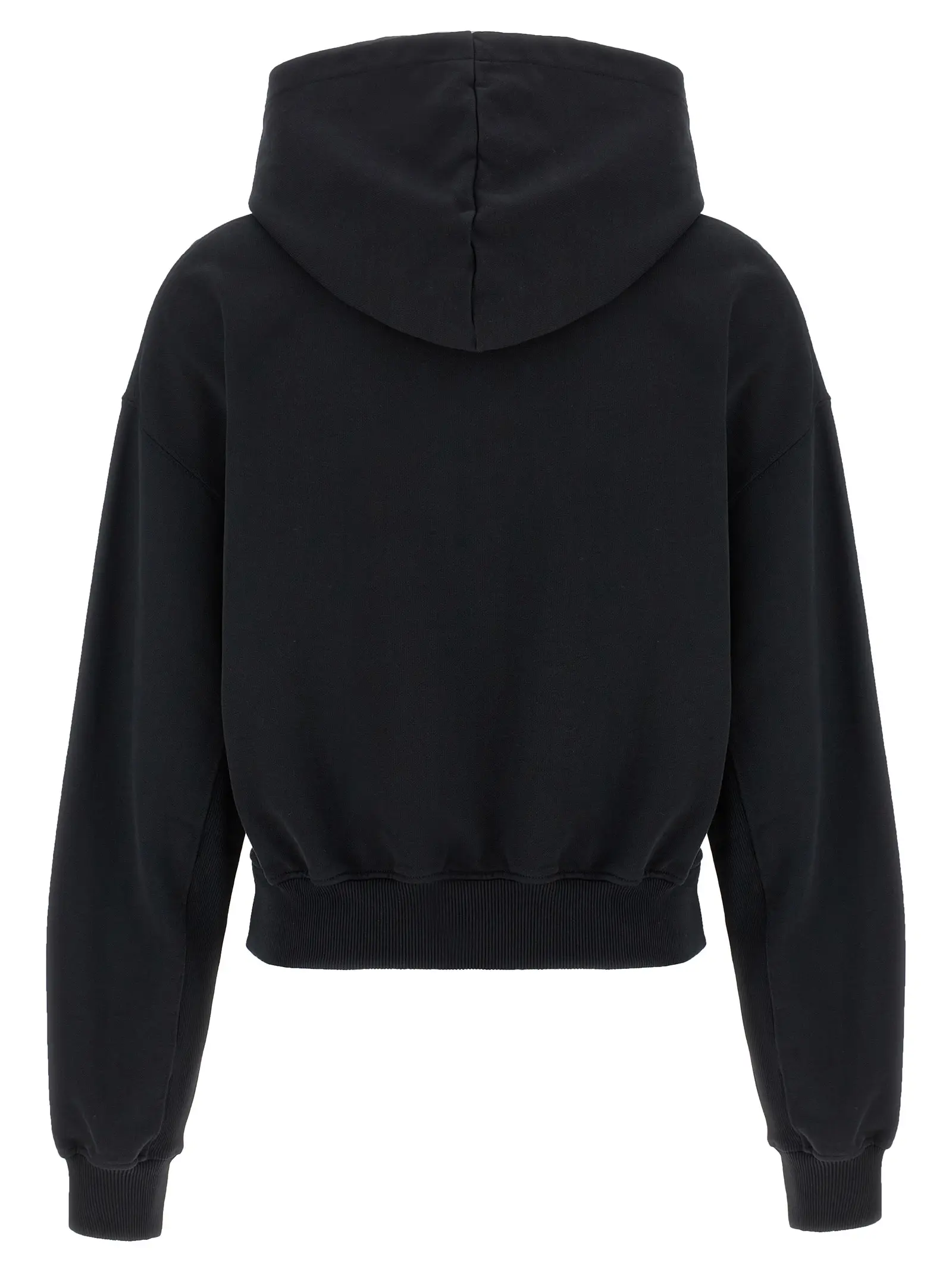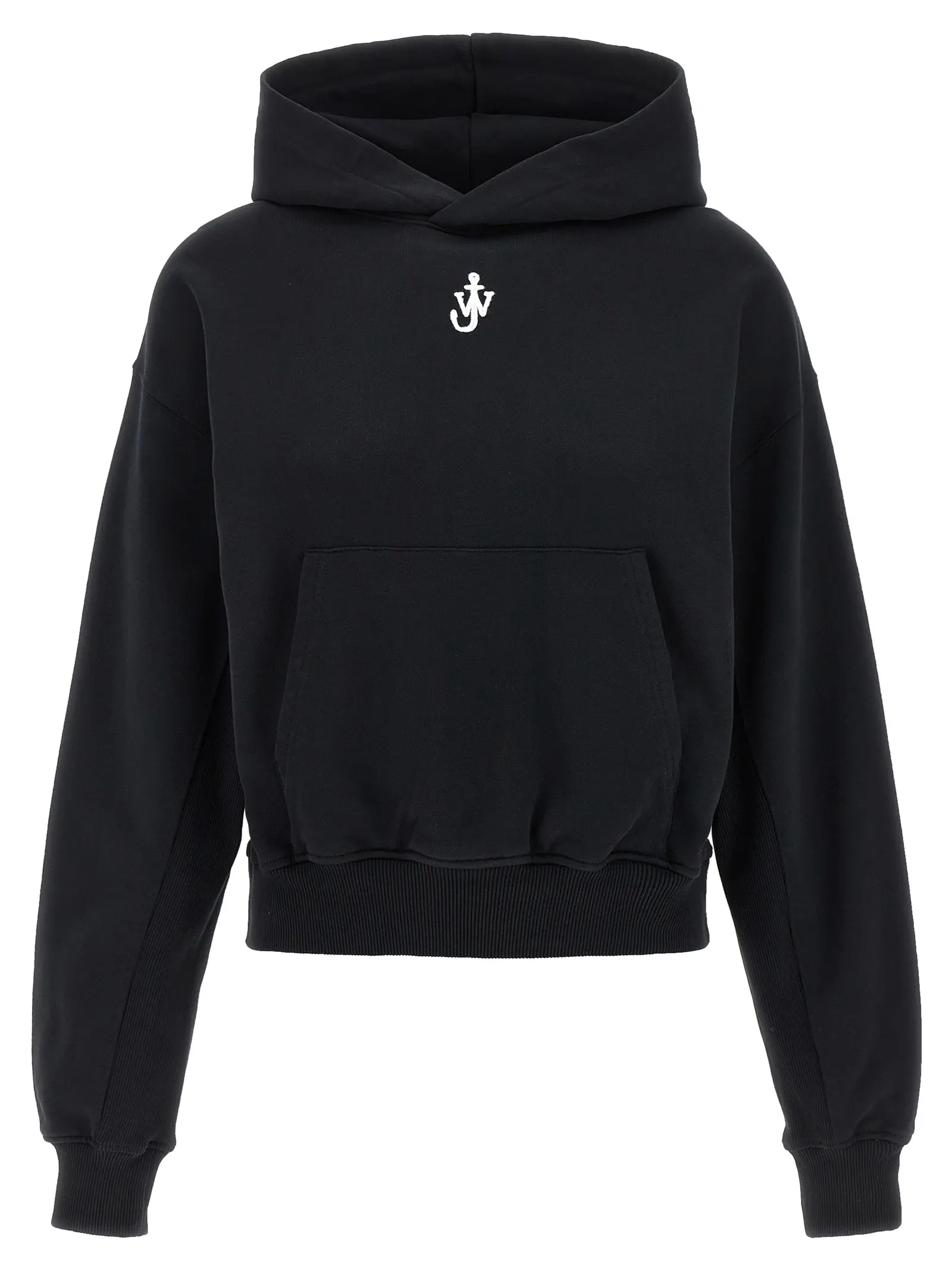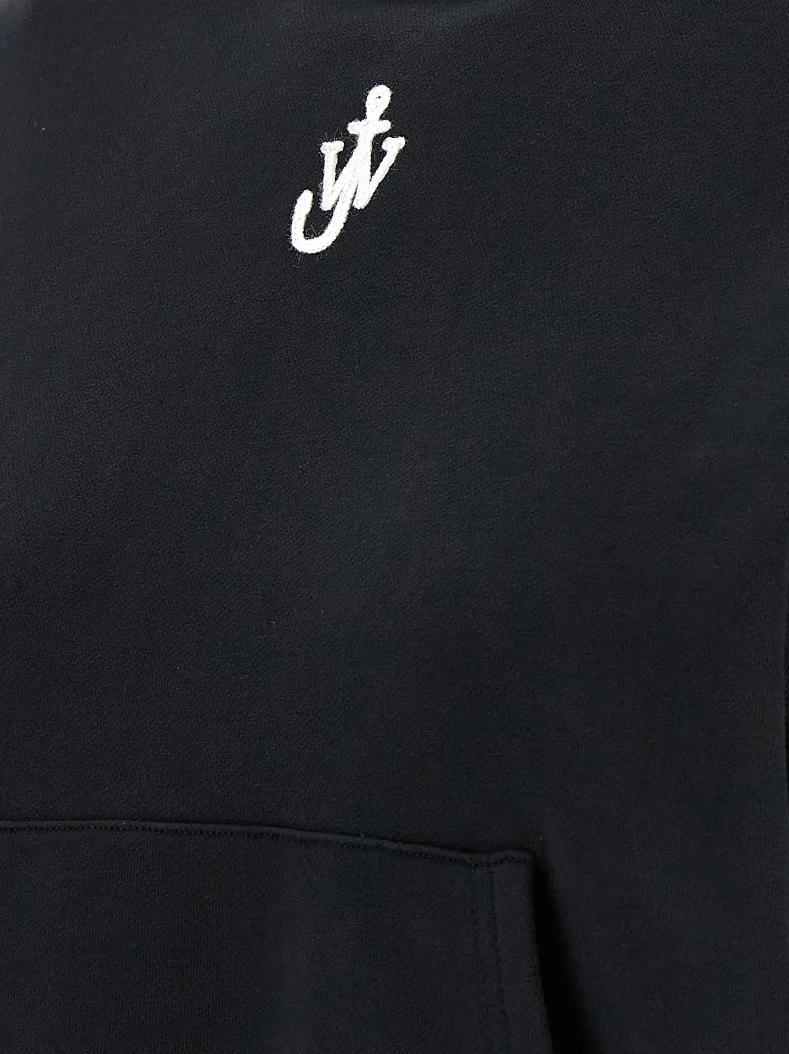Чорне худі з 100% бавовни поєднує сучасний кроп-крій із вишуканими ребристими вставками по боках, підкреслюючи витонченість силуету. Вишитий логотип у вигляді якоря надає виробу унікального шарму, а кенгуру-кишеня та манжети забезпечують комфорт і функціональність, створюючи ідеальний баланс стилю й практичності для вишуканого повсякденного образу.