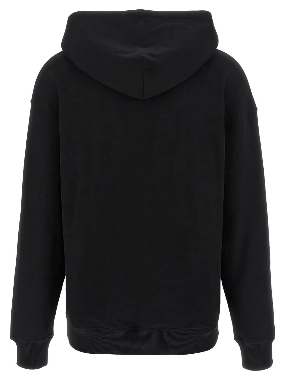 Чорне худі з органічної бавовни поєднує в собі неперевершену якість і сучасний дизайн із фірмовим логотипом, довгими манжетами та заниженими плечима, забезпечуючи комфорт і стиль для впевнених у собі жінок, які цінують екологічність і універсальність у повсякденному образі.