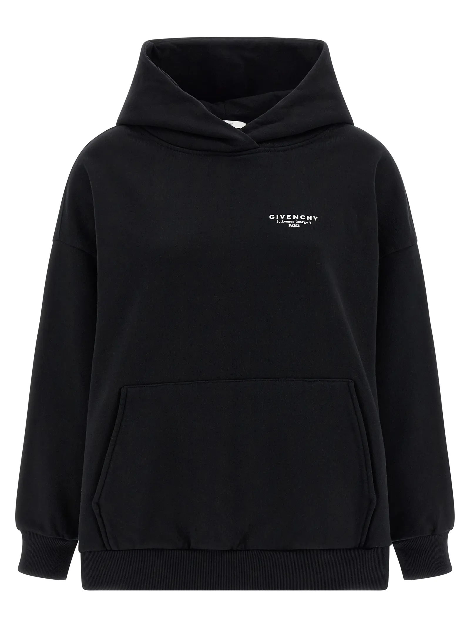 Елегантне худі з щільної бавовняної тканини з ворсом, що поєднує комфорт і стиль, доповнене виразним логотипом спереду та ззаду. Універсальний дизайн з кенгуру кишенею, довгими рукавами з манжетами та опущеними плечима підкреслює сучасний статус і вишукану інноваційність виробу.
