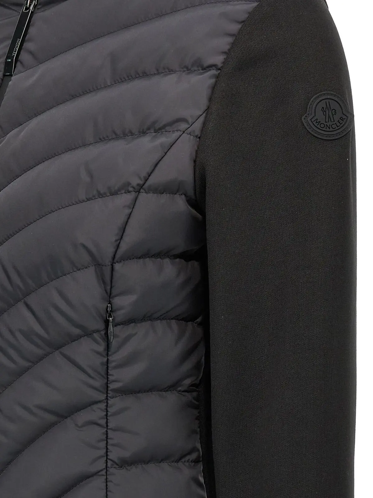 Цей чорний худі Moncler Zip Up втілює елегантність та сучасність, поєднуючи м’який бавовняний джерсі з легким стьобаним нейлоновим жилетом на передній частині. Застібка на блискавці, зручні кишені та довгі рукави з еластичними манжетами надають йому функціональності та комфорту. Логотип в тон підкреслює статус бренду, а інноваційний дизайн робить цю модель універсальною для будь-яких випадків, від повсякденних до стильних виходів. Виготовлений з натуральних матеріалів, цей худі також відповідає сучасним екологічним стандартам, що робить його не лише модним, а й свідомим вибором.