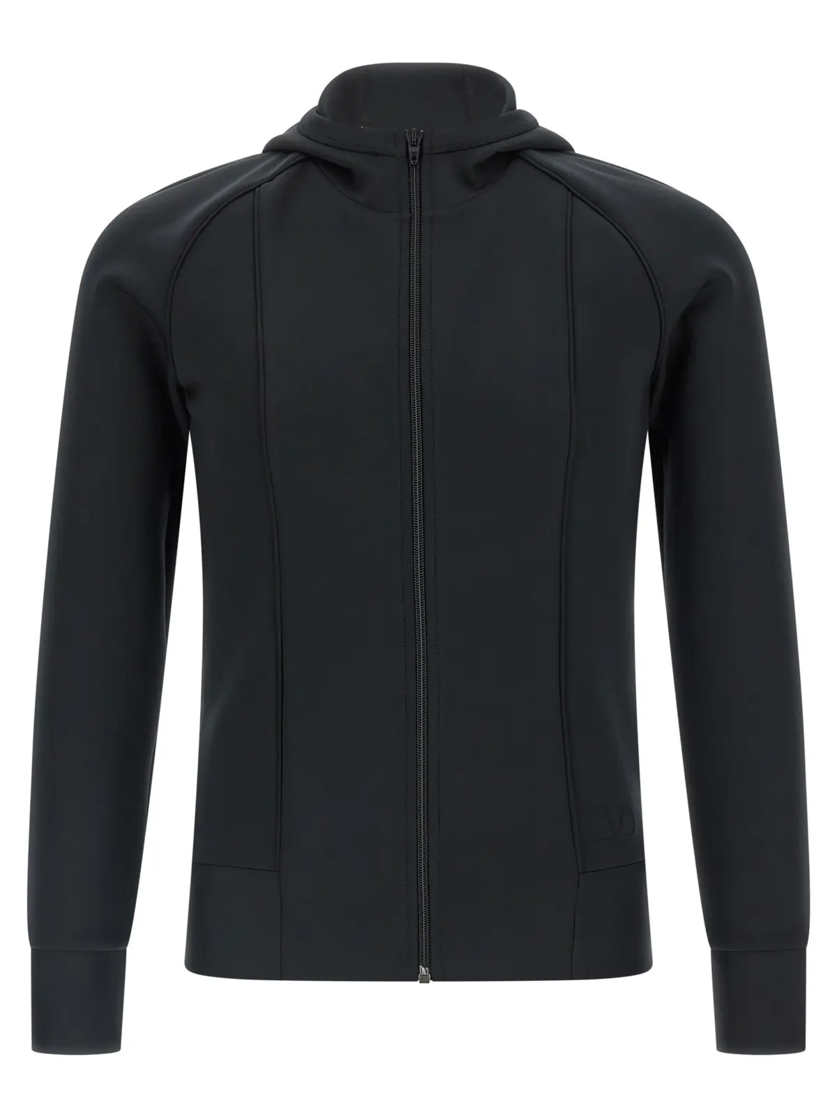 Цей чорний худі Valentino Garavani виконаний з високоякісного технічного джерсі, поєднуючи поліестер і еластан для ідеального балансу комфорту та довговічності. Вишуканий дизайн із високою горловиною, практичною застібкою на блискавку та стильними кишенями підкреслює сучасну елегантність, а об’ємний тривимірний логотип VLogo Signature додає унікальності та статусності, роблячи цей виріб універсальним вибором для вимогливих поціновувачів моди.