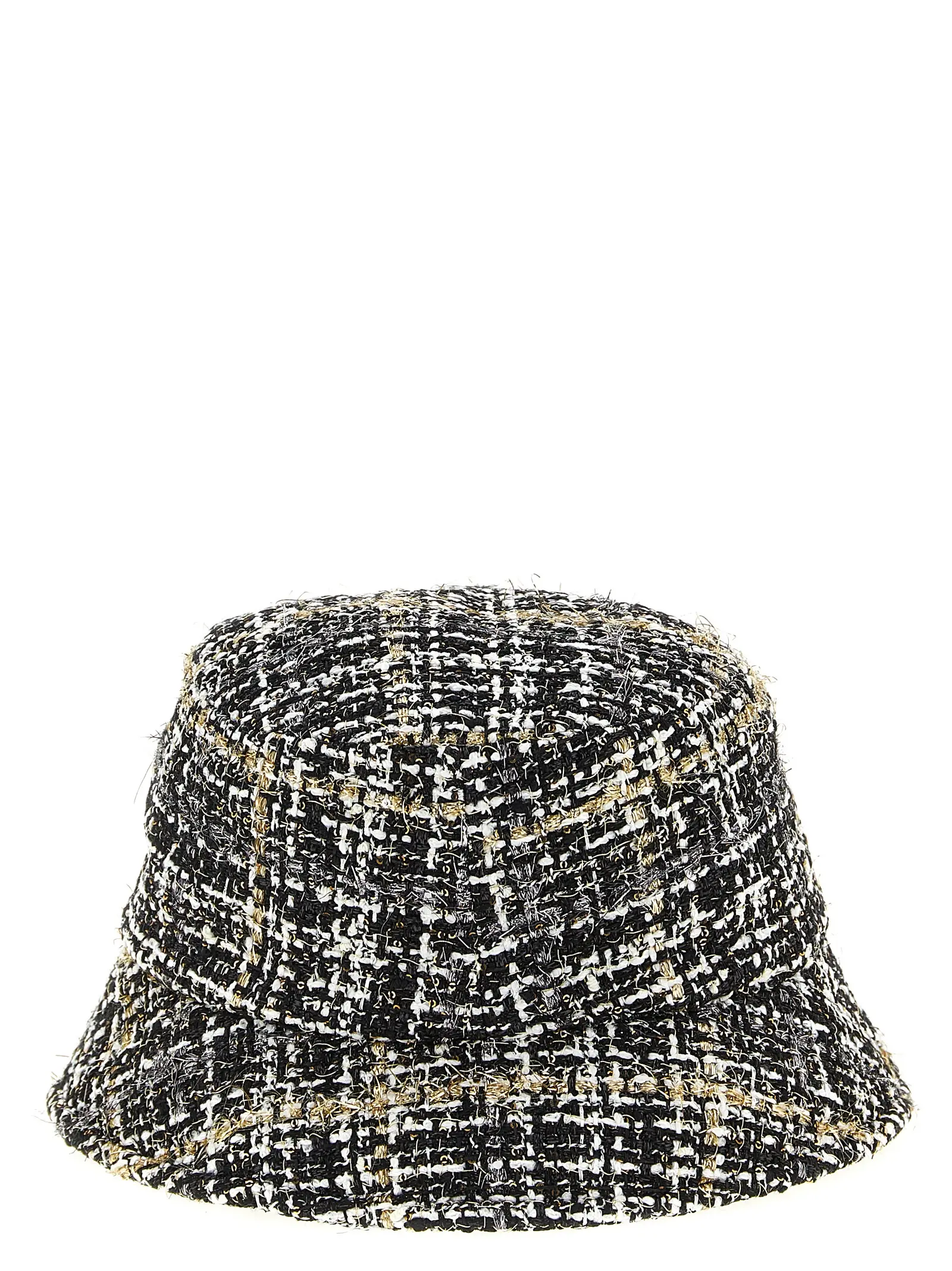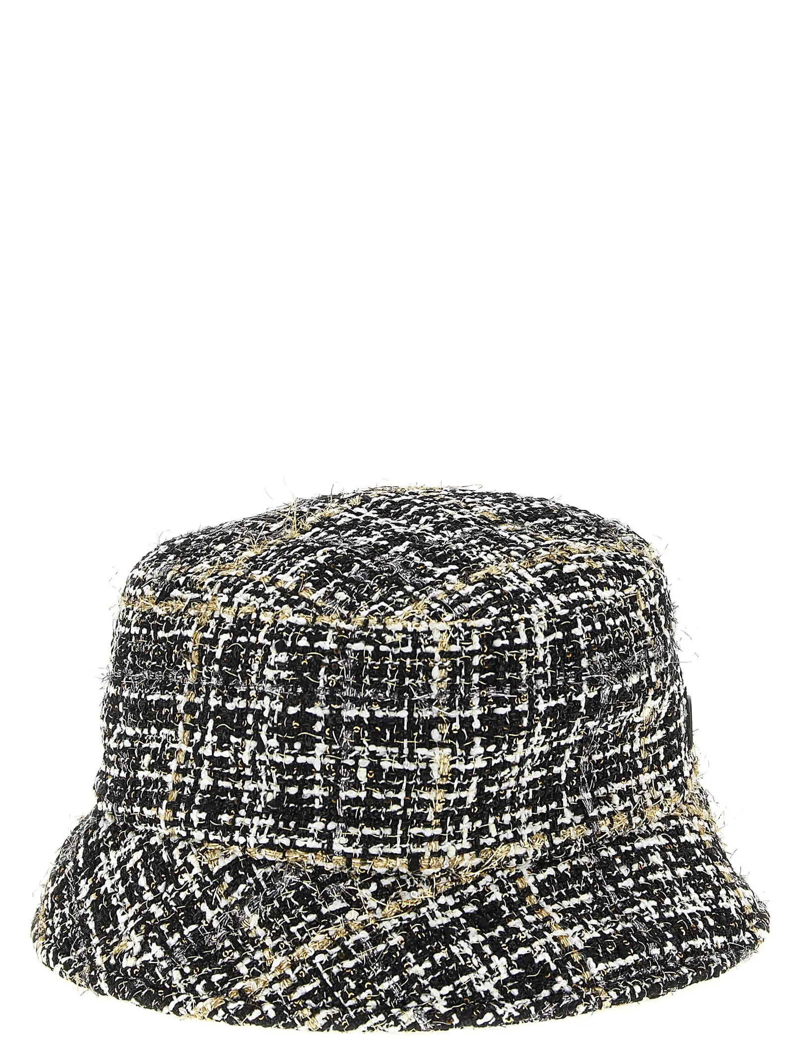 Вишуканий жіночий капелюх у стилі ведерко, виконаний з твідової тканини з металізованою ниткою, поєднує традиційну майстерність і сучасний дизайн. Цей багатокольоровий аксесуар підкреслює індивідуальність, статус і неперевершений смак, додаючи образу елегантності та універсальності.