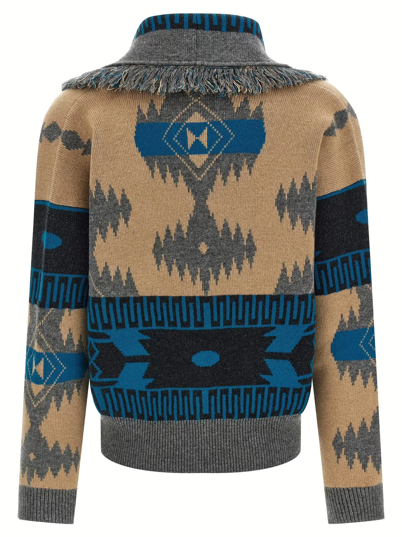 Вишуканий кардиган-бомбер поєднує інноваційний жакардовий візерунок та розкішний кашемір із шерстю вищого гатунку, забезпечуючи неперевершену м’якість і тепло. Універсальний дизайн із довгими манжетами та елегантним застібанням підкреслює статус і бездоганний стиль сучасної жінки.