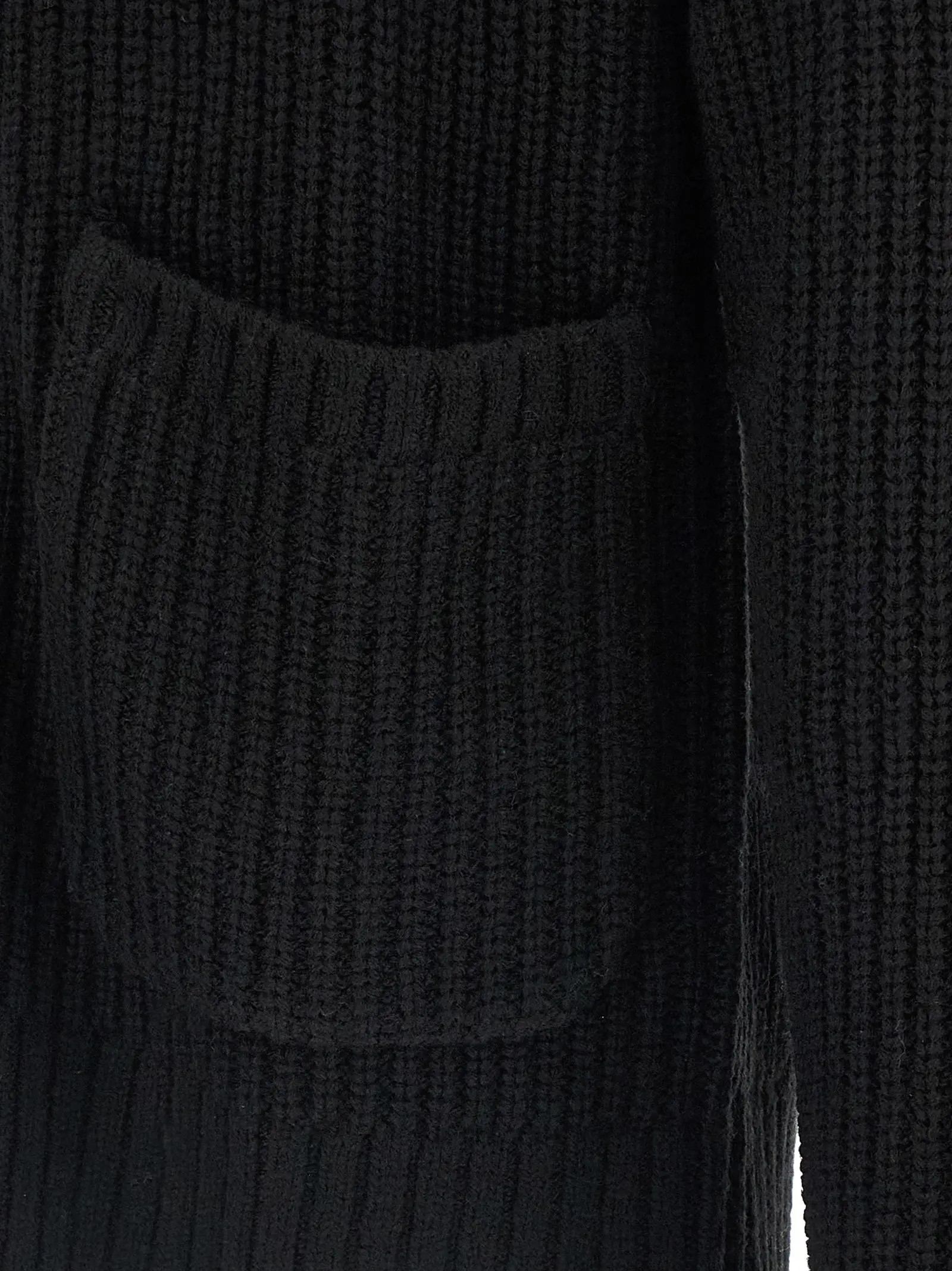 Чорний кардиган Chore Knit Jacket вирізняється преміальною якістю завдяки поєднанню шерсті, ацетату та нейлону, що забезпечує тепло і комфорт. Елегантний дизайн з ребристою фактурою, коміром та застібкою на блискавку підкреслює статус і стиль, а практичні накладні кишені додають функціональності для сучасного образу.