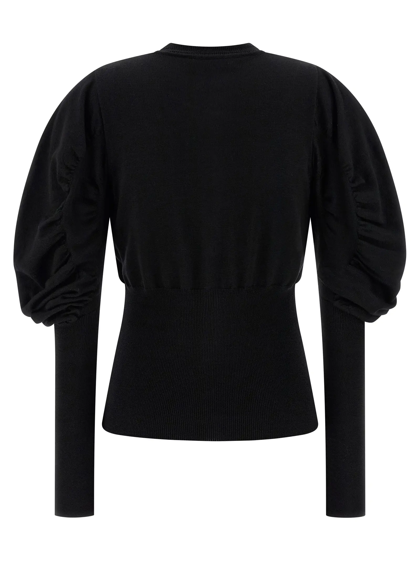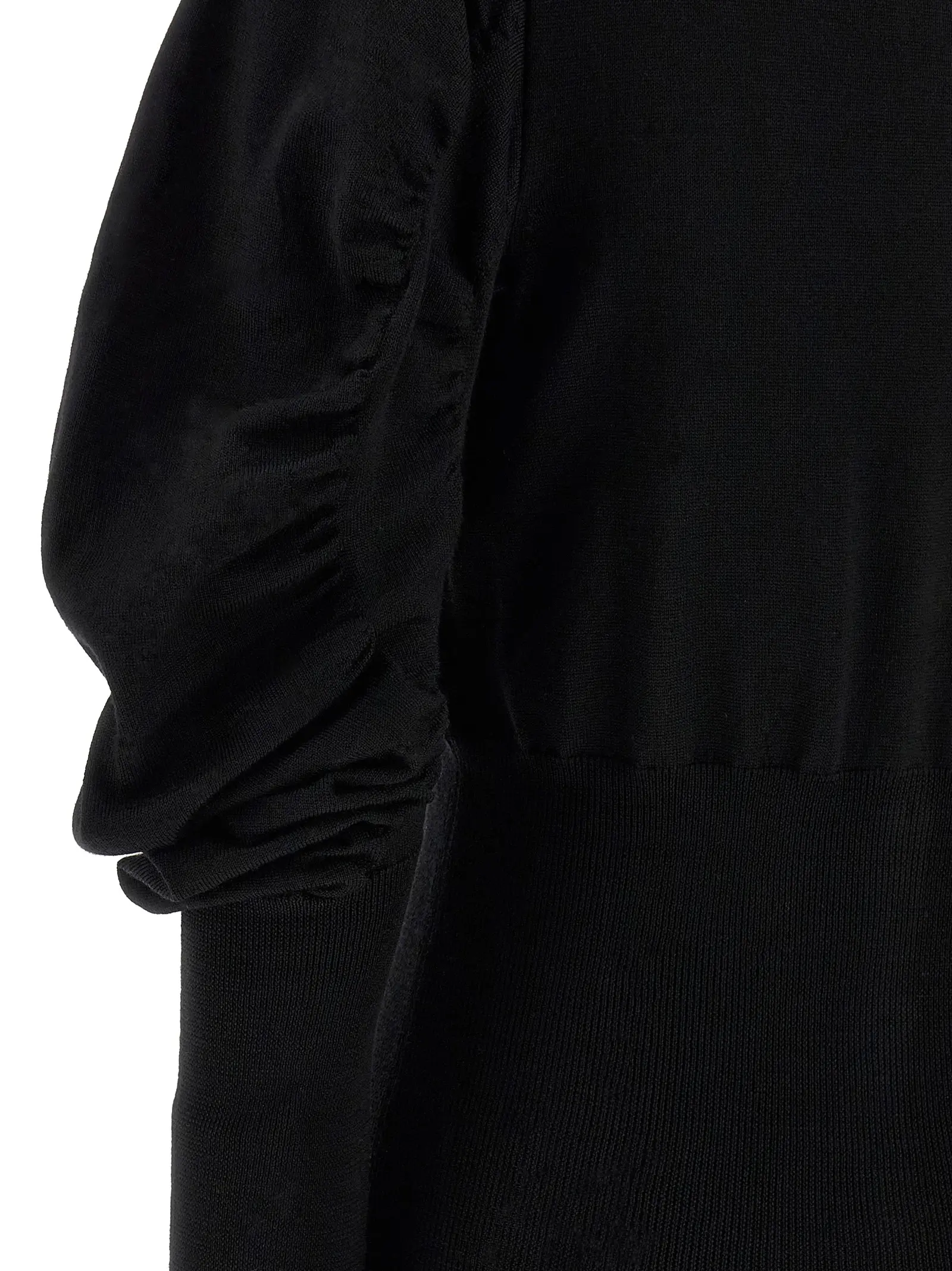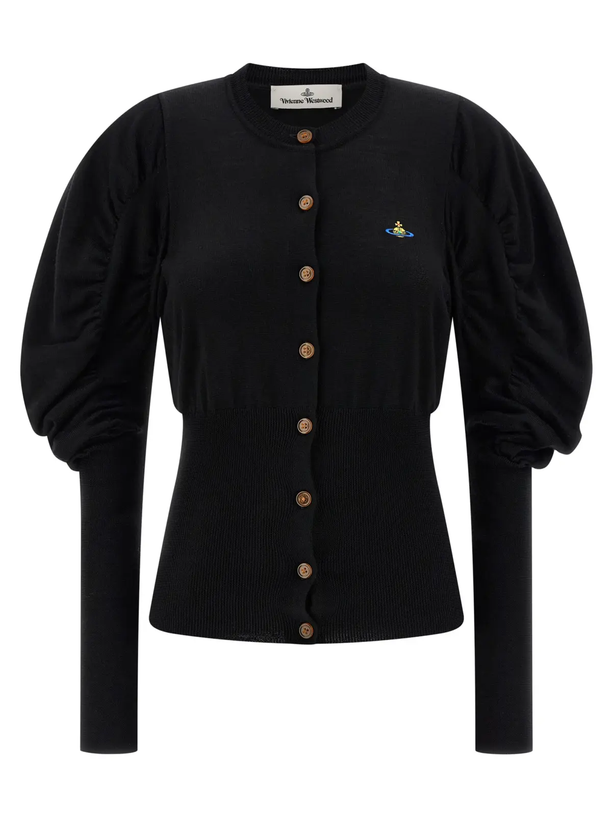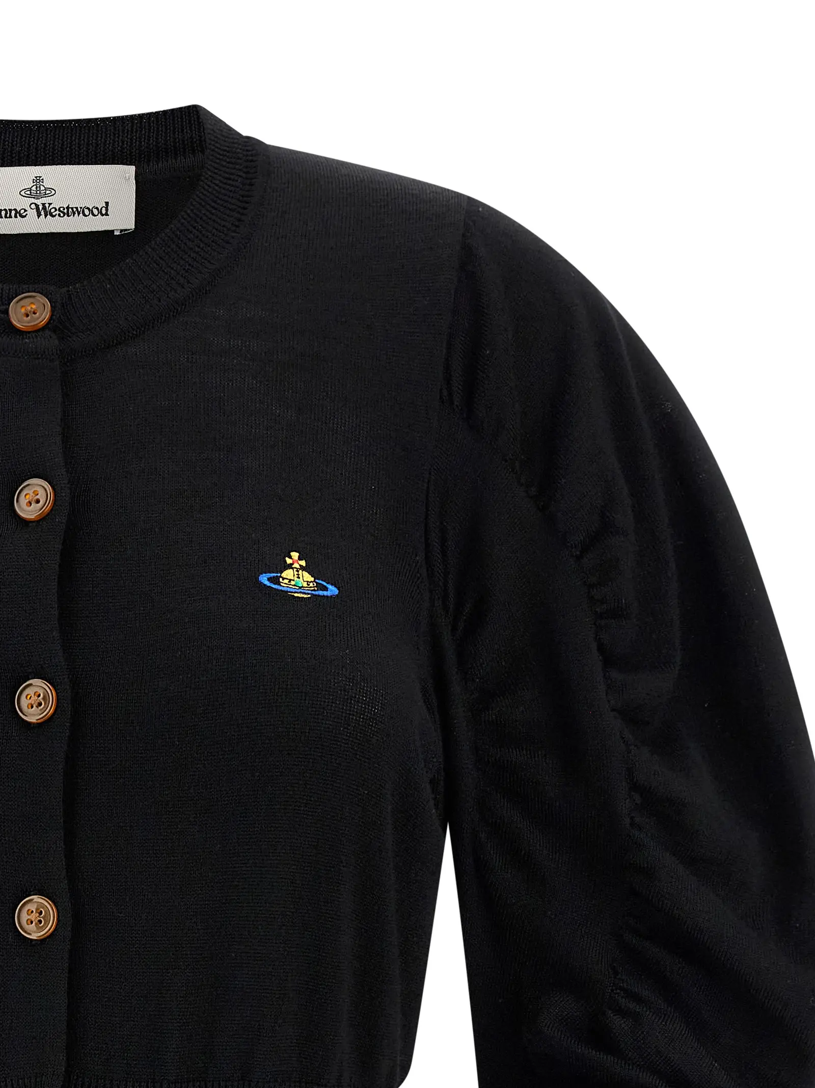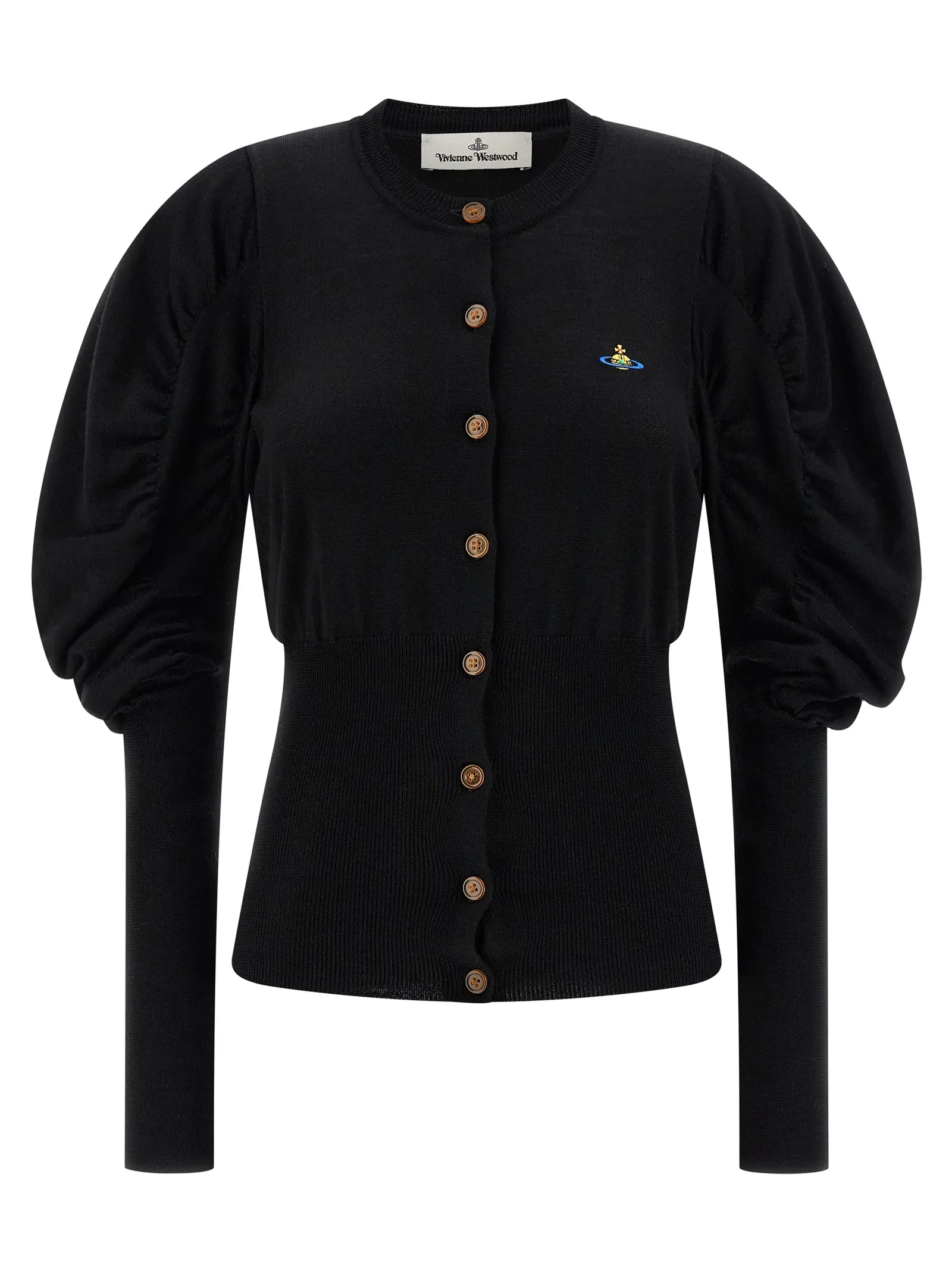 Чорний кардиган з меланжевої вовни преміум класу, виготовлений із 100% високоякісної натуральної вовни, поєднує вишуканий дизайн із витонченою вишивкою логотипа. Елегантний круглий виріз, передня застібка на ґудзики та плавно окреслені плечі створюють неперевершений стиль і комфорт, підкреслюючи статус та універсальність образу.