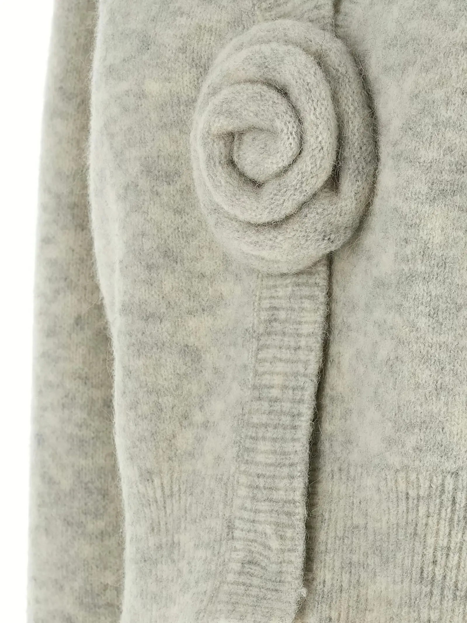 Цей кардиган із суміші вовни та альпаки поєднує інноваційний кроп-дизайн із вишуканими об’ємними рукавами, знімними плечовими стрічками та декоративним квітковим елементом, що підкреслює універсальність і статус, створюючи неповторний стиль для сучасної жінки, яка цінує якість і елегантність.
