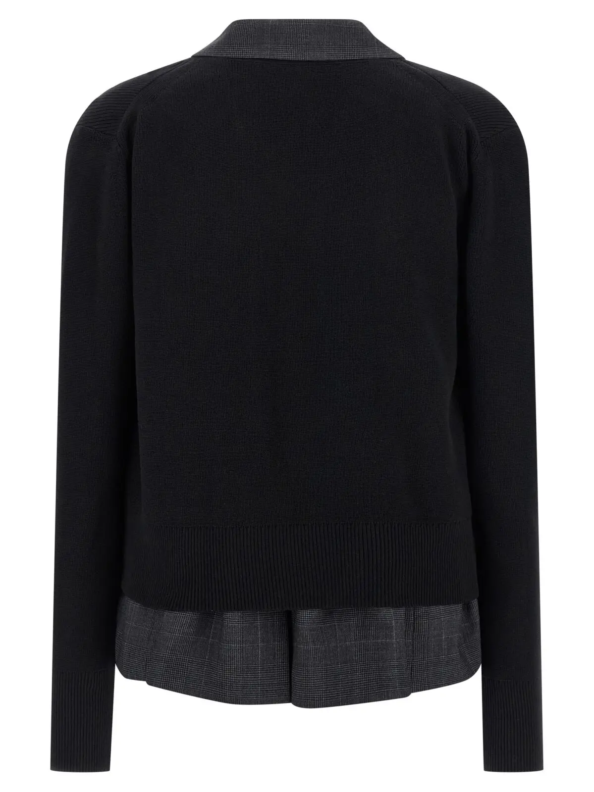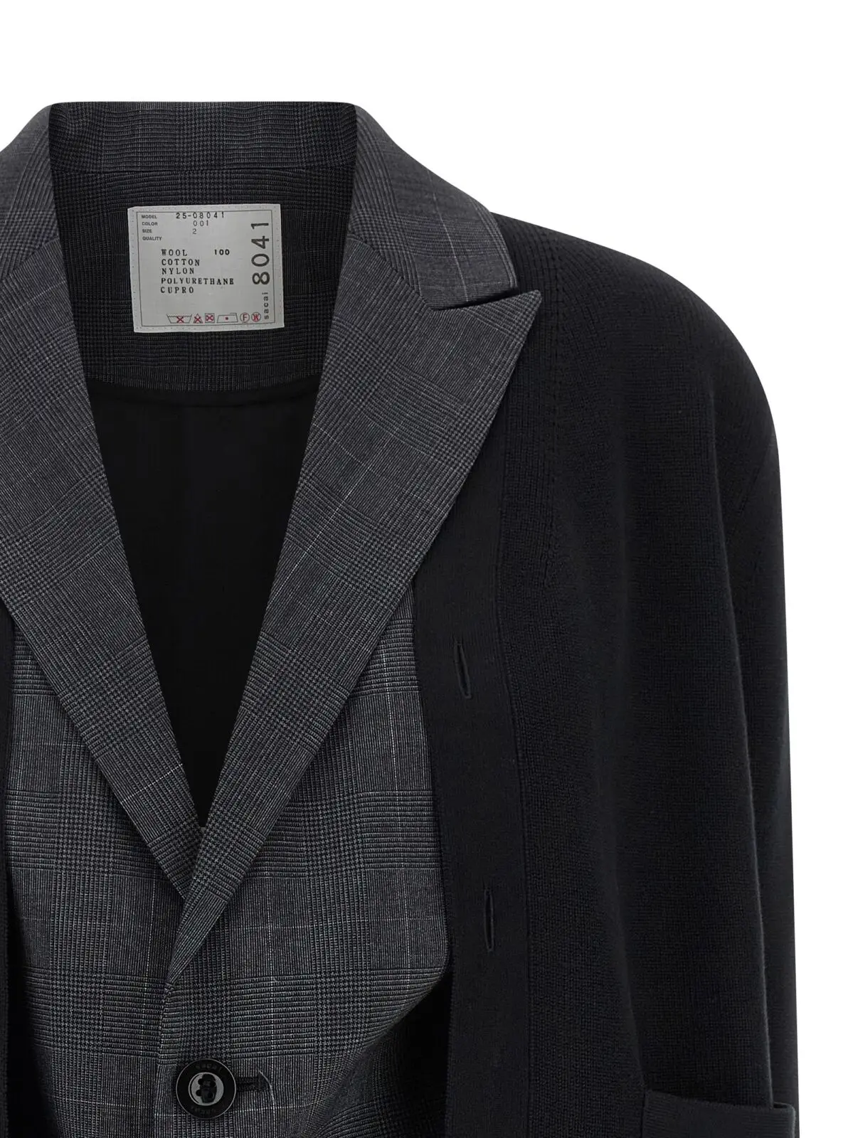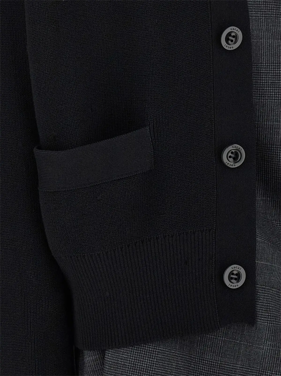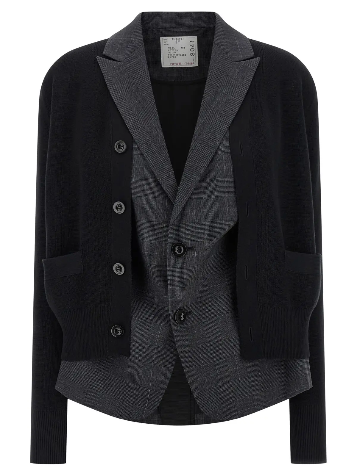 Цей кардиган преміум-класу поєднує ніжність в’язаної вовни з елегантністю піджака з вовняної тканини у клітинку та тюлю, створюючи унікальний подвійний шар для неперевершеного стилю. Вишуканий фасон із застібкою на ґудзики, довгими манжетами та кишенями підкреслить статус і додасть універсальності вашому образу.