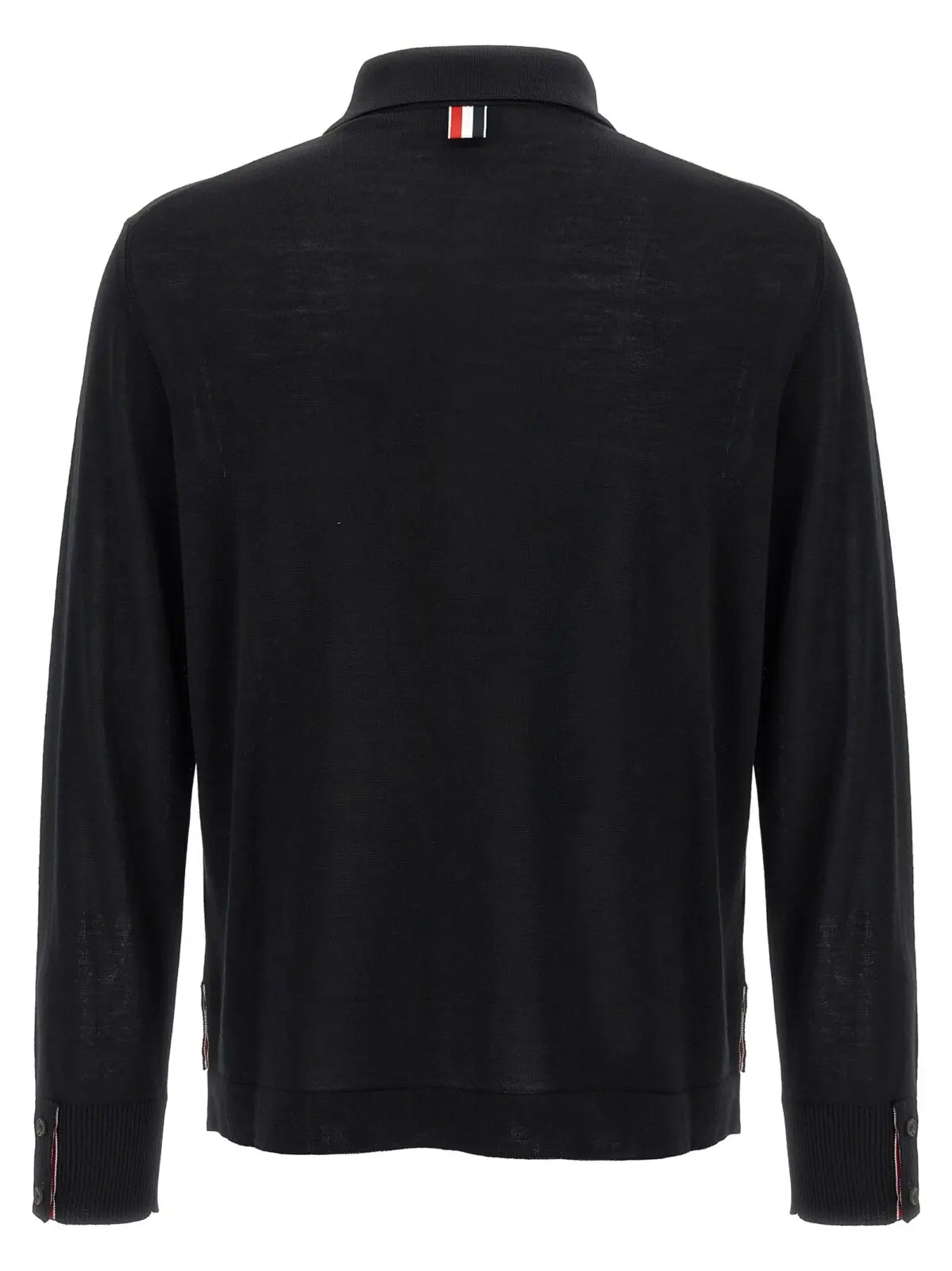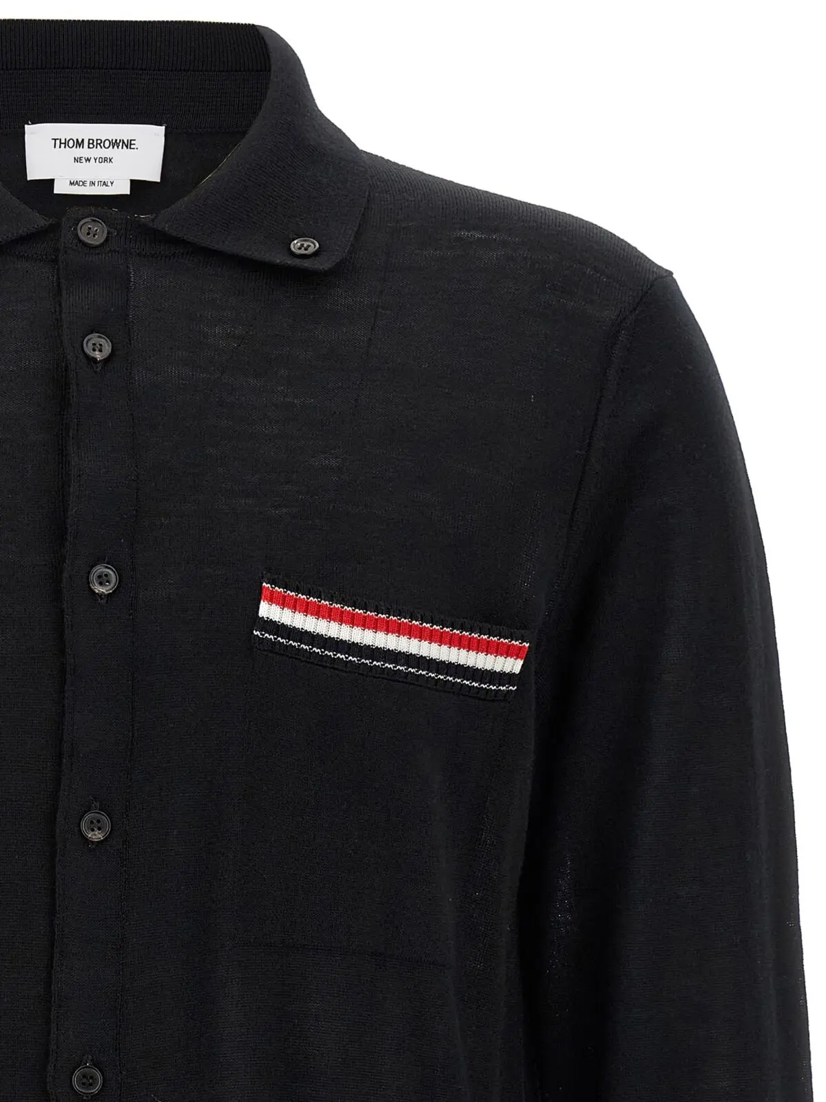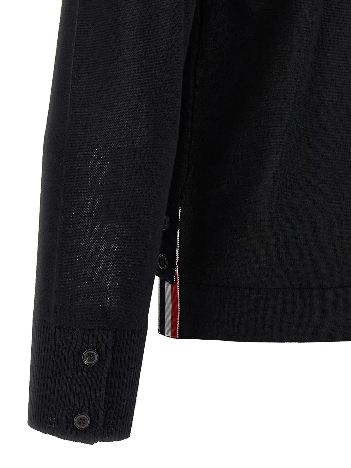 Чоловічий кардиган чорного кольору з 100% новозеландської вовни вирізняється витонченим кроєм із коміром сорочкового типу, асиметричною довжиною та боковими розрізами з деталлю в кольорах національного прапора. Елегантний дизайн із застібкою на ґудзики та накладною кишенею поєднує традиції та інновації, підкреслюючи статус і неперевершений стиль.