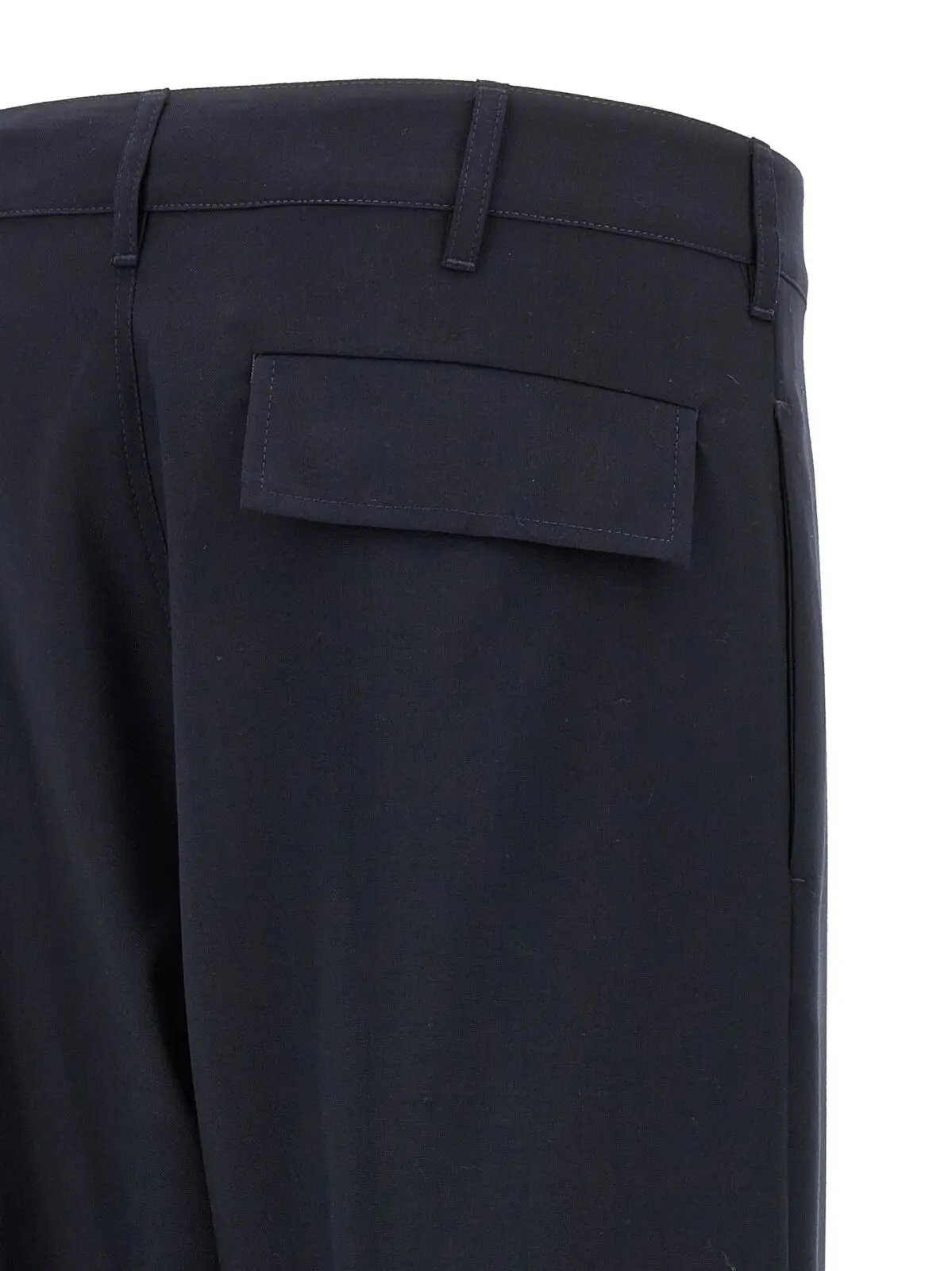 Ці сині чоловічі карго штани виготовлені зі 100% virgin wool, що забезпечує неперевершену м’якість і комфорт. Прямий крій надає елегантності та універсальності, що дозволяє носити їх як у повсякденному житті, так і на особливі події.